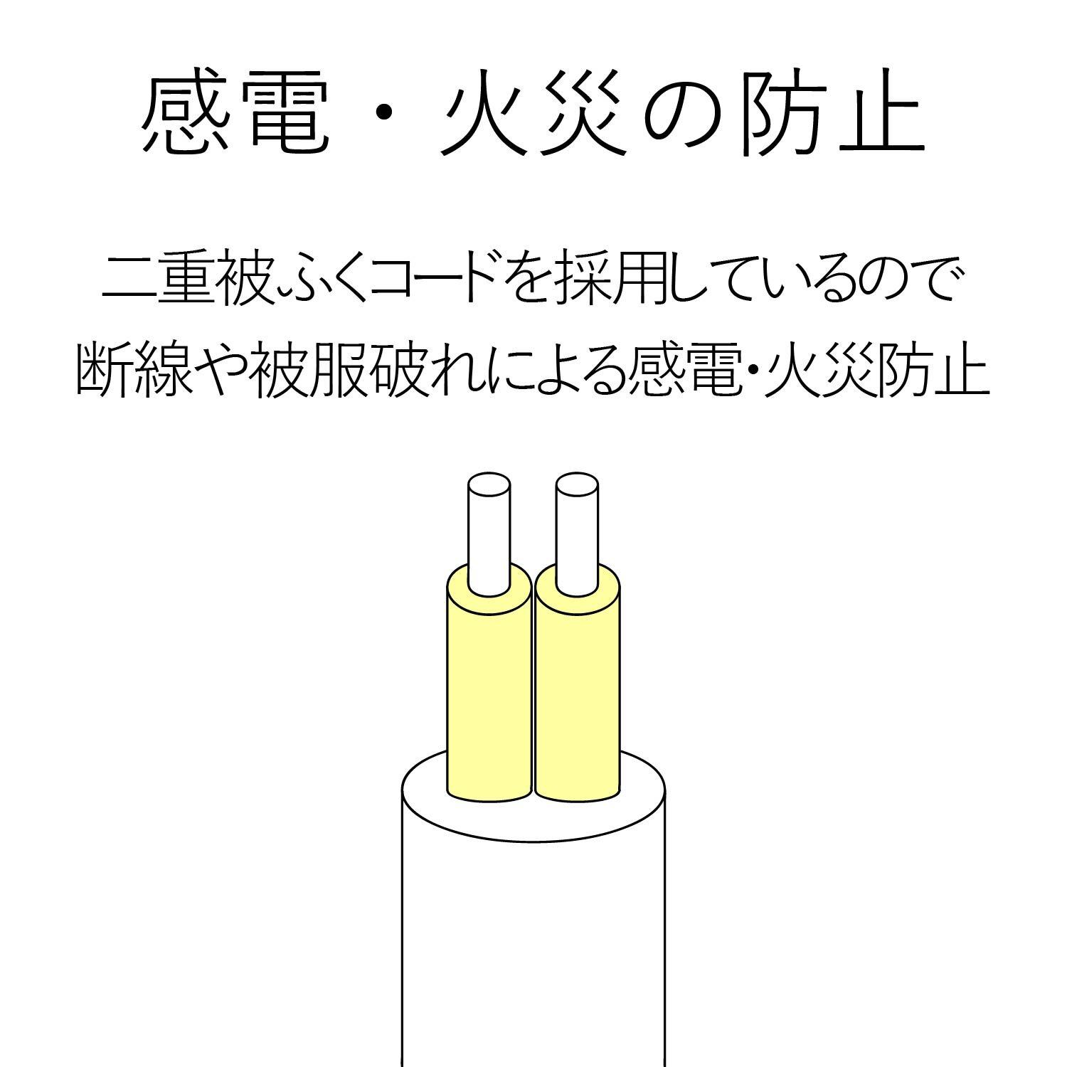 ■電源コードには、社団法人日本配線器具工業会規格(JWDS0010)に適合した二重被ふくコードを採用していますので、断線や被ふく破れによる感電・火災の防止に有効です。