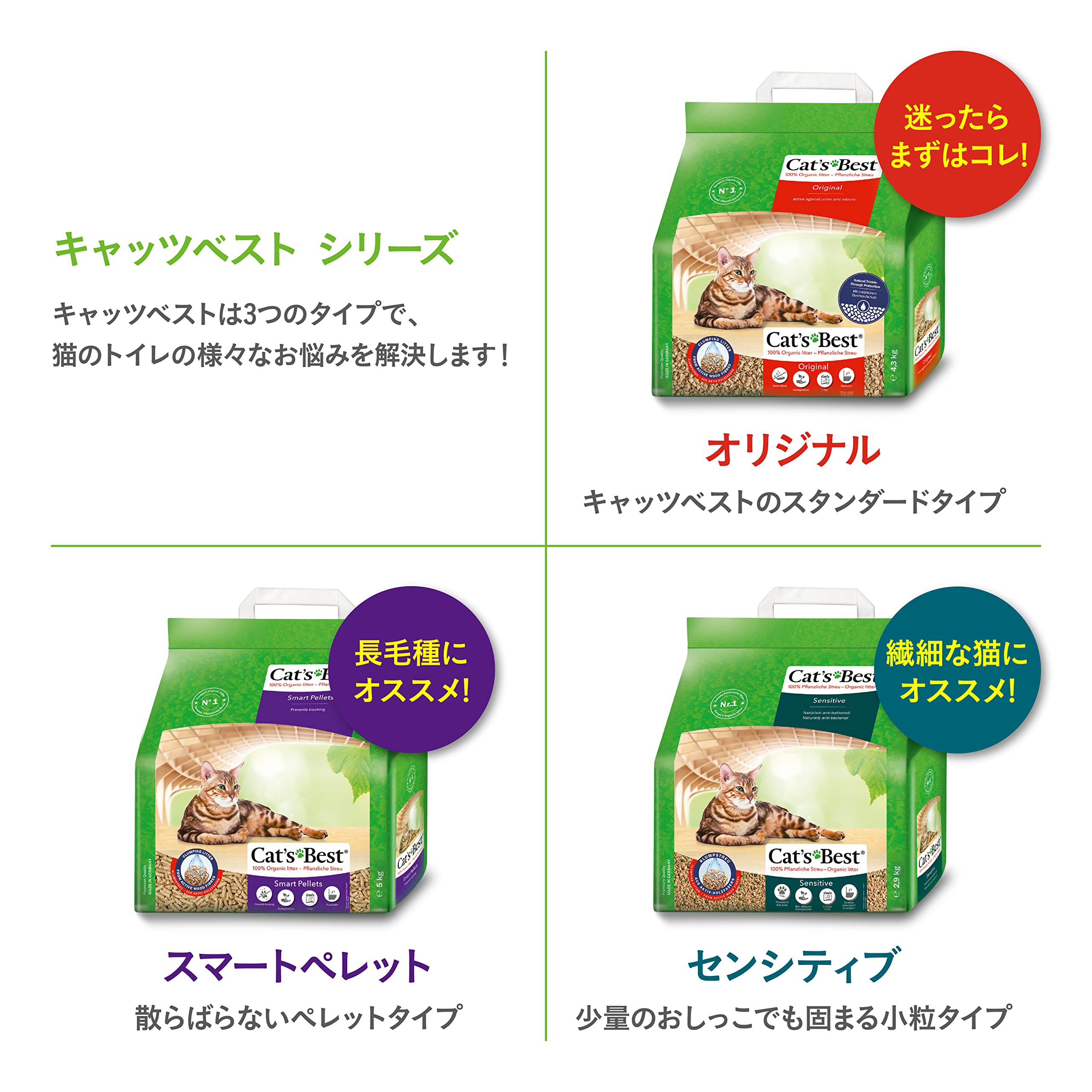 キャッツベストはドイツの森と科学から生まれた、100%天然素材の猫砂。