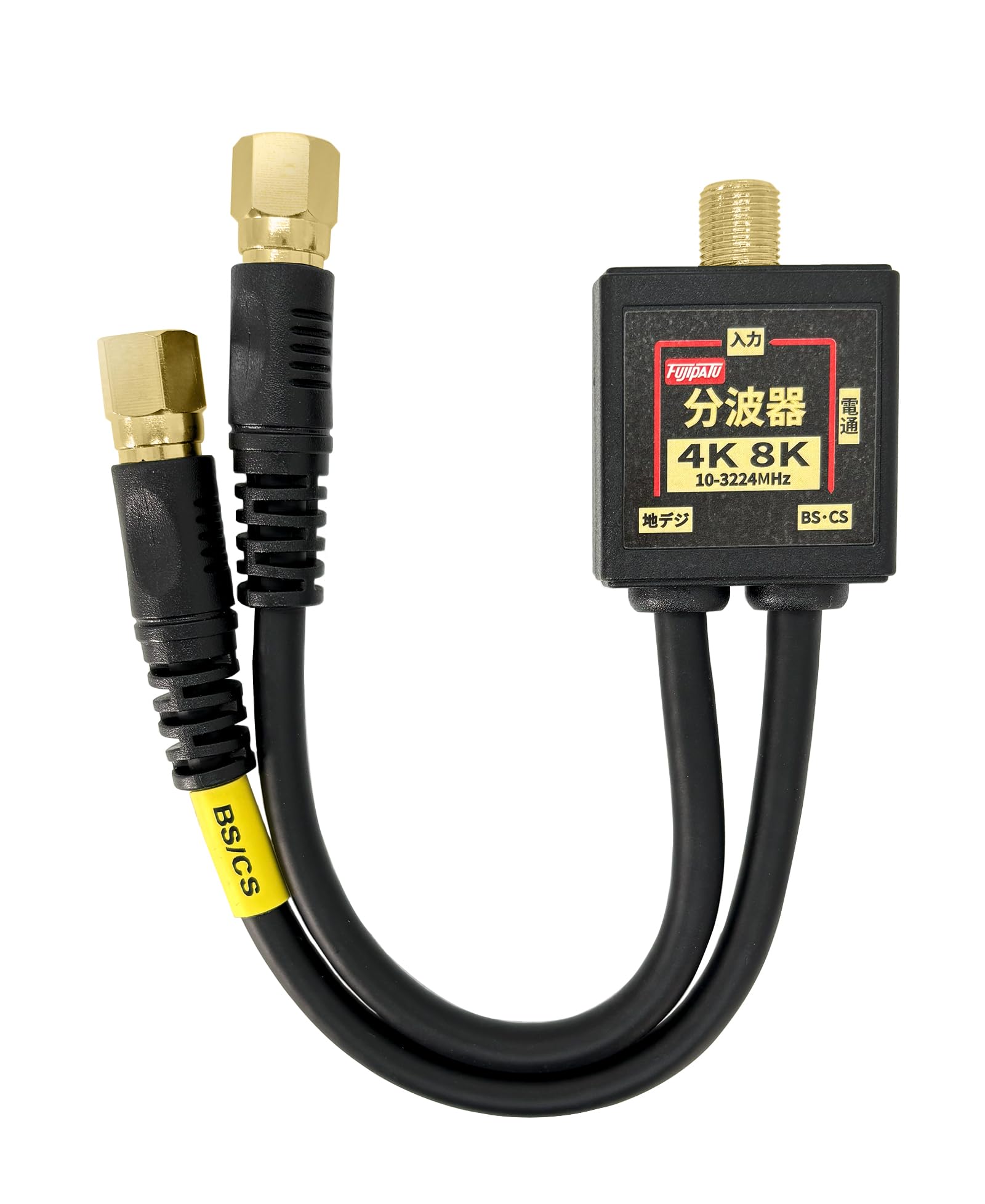 分波器 アンテナ分波器 4Cケーブル一体型 0.2m 金メッキ (4K8K / 地デジ/BS CS/CATV デジタル放送対応) ブラック FF-4874BK