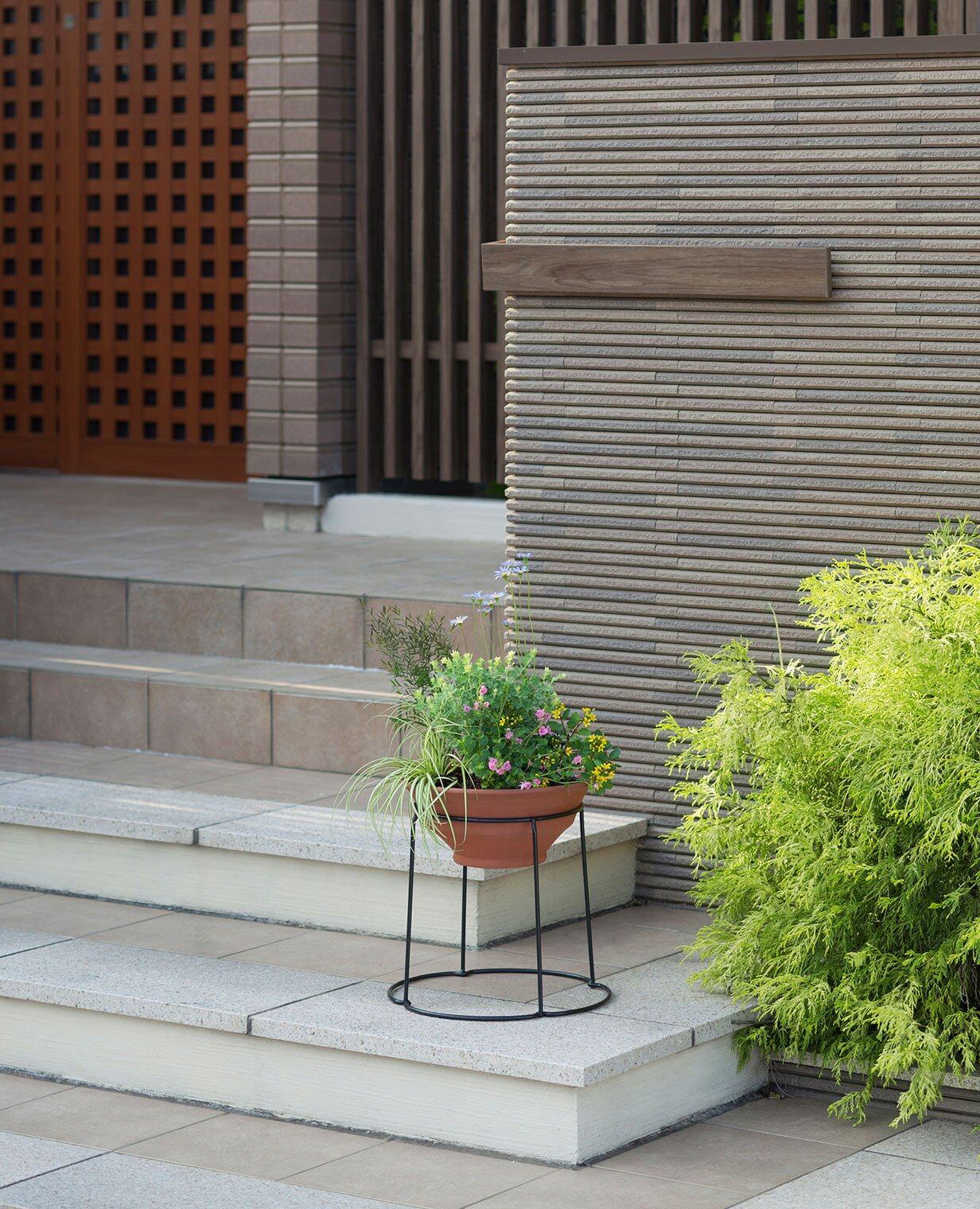 プランターに植えた花やグリーンに高さをつけることでより一層華やかに演出