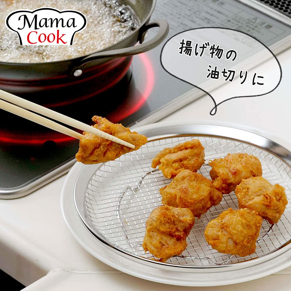 下村企販 ざる カラッと 油切り皿 大 【日本製】 食洗機対応 油切れが早い 大きなアミ目 卓上に出せる 平ザル 揚げ物 野菜の水切り ステンレス 22.6cm ママクック 燕三条 40252