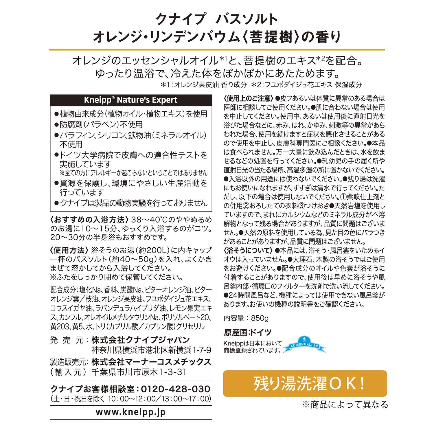 【クナイプ公式】 バスソルト オレンジ・リンデンバウム<菩提樹>の香り 850g 発汗・温まり