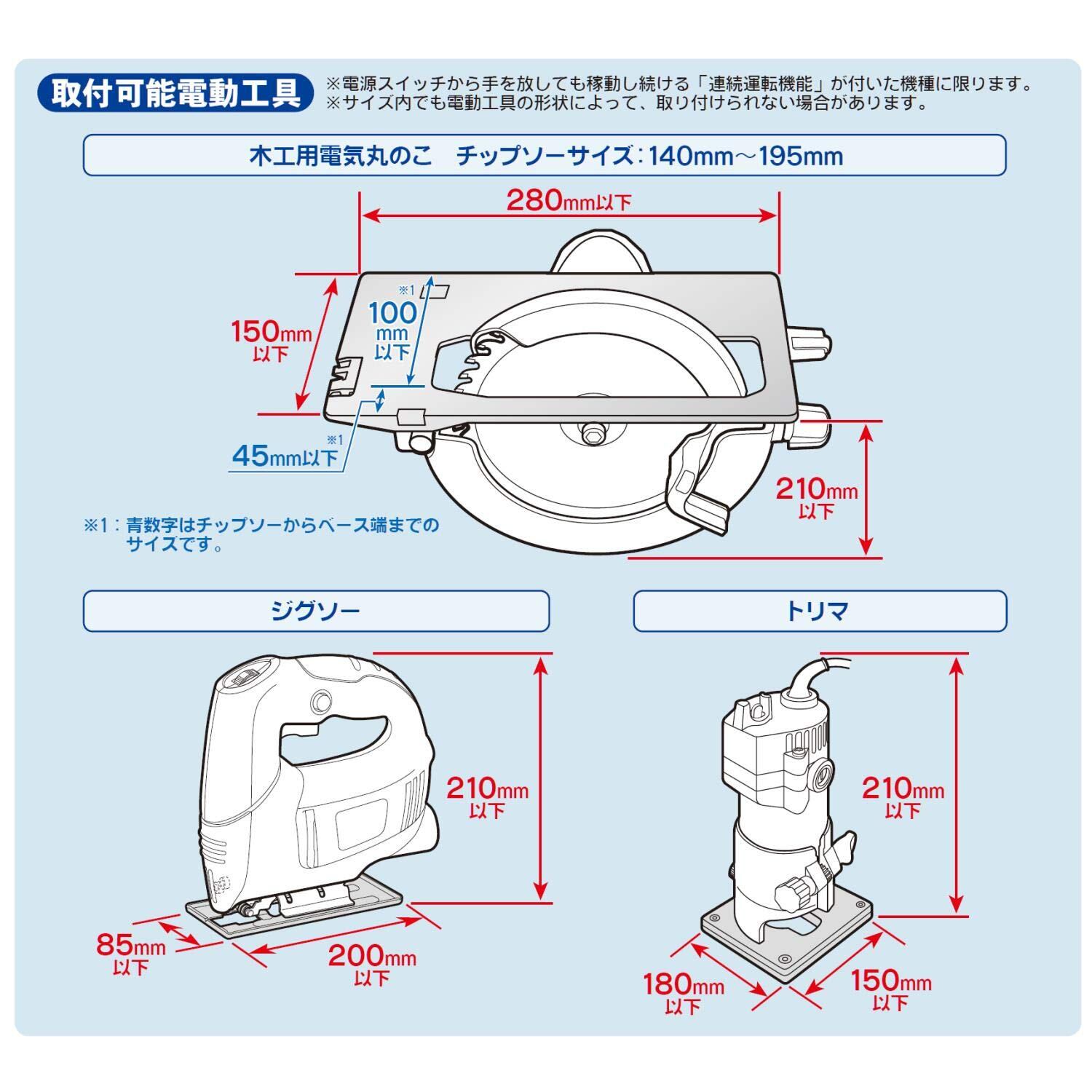 取付可能電動工具:丸のこ、ジグソー、トリマー