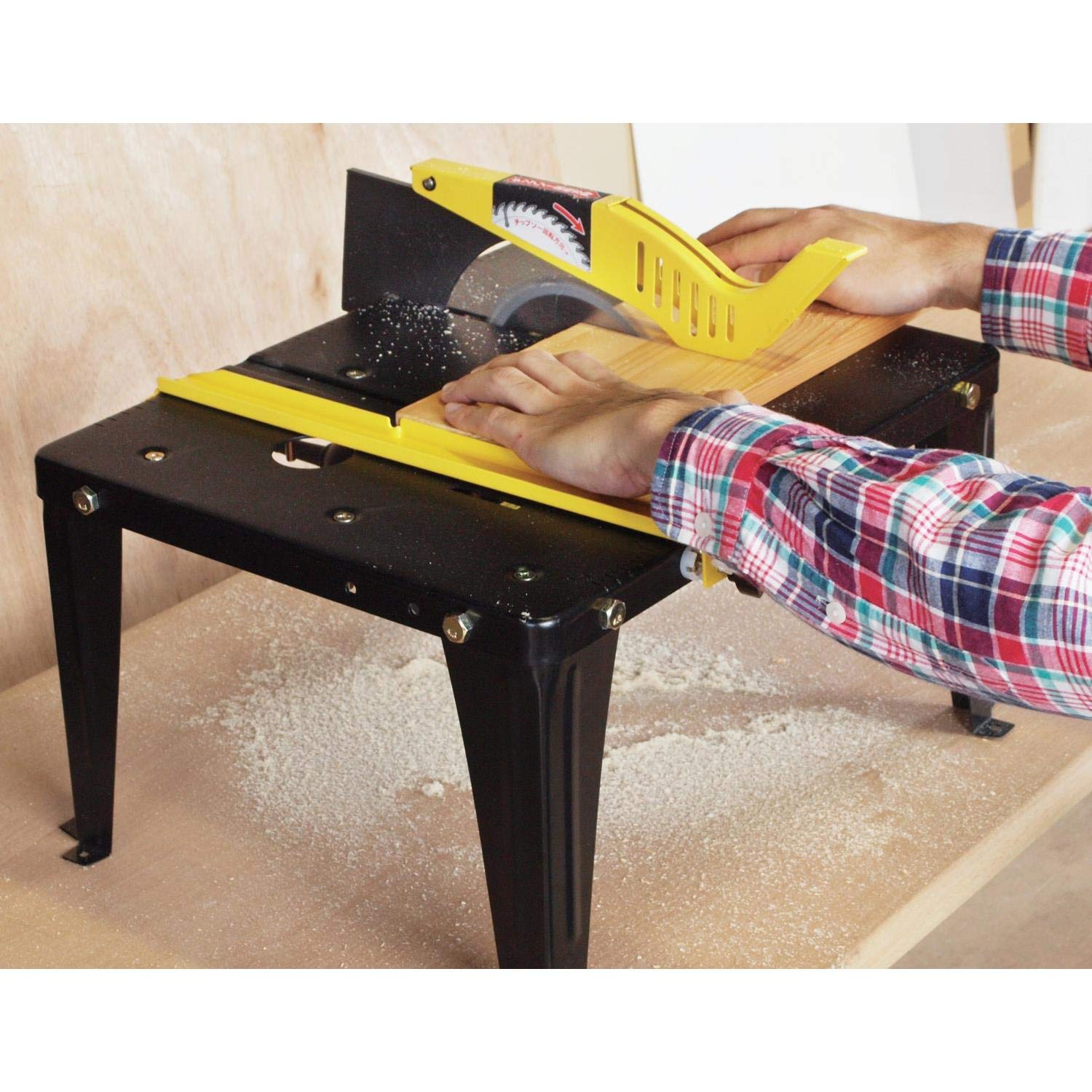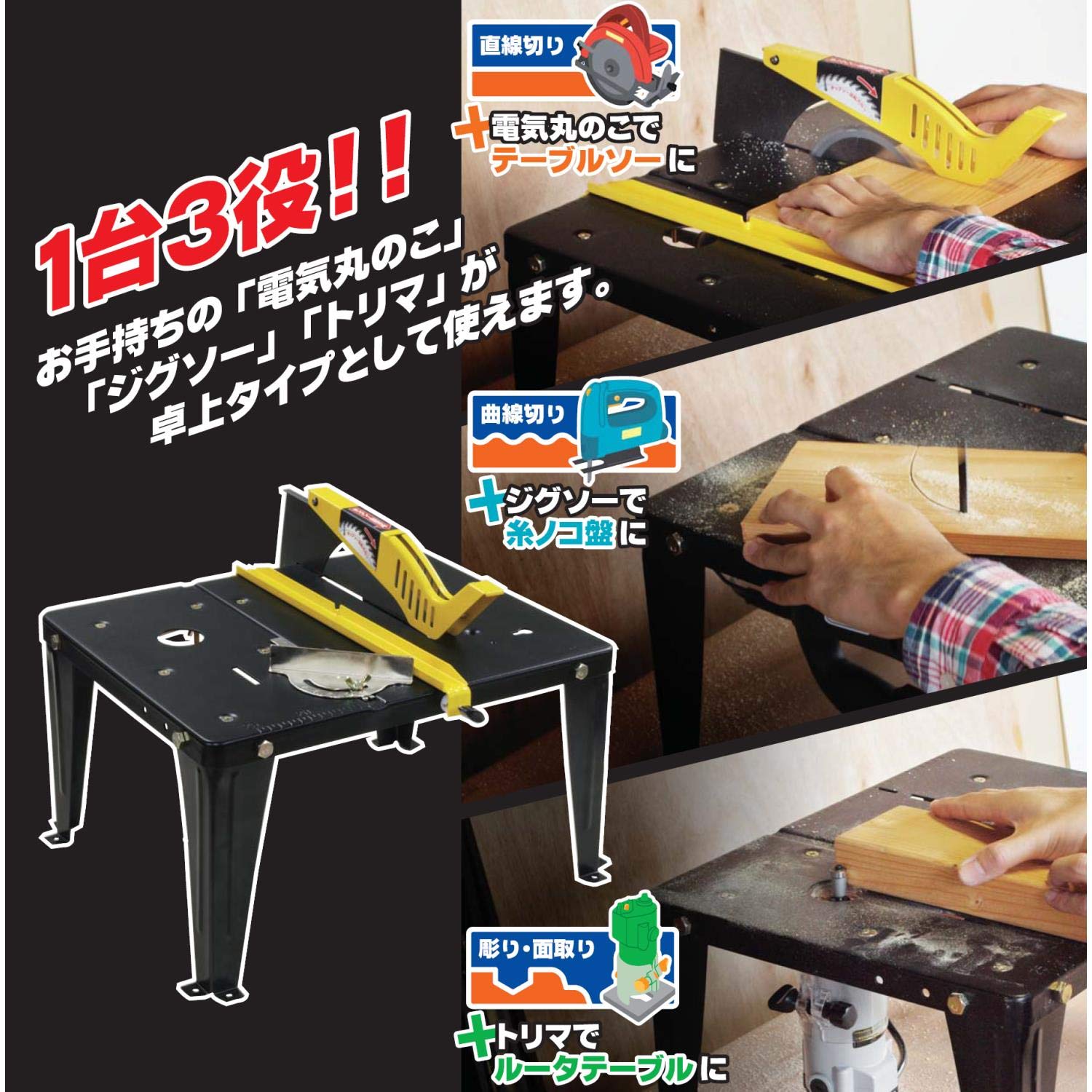 1台3役、お手持ちの電気丸のこ、ジグソー、トリマが卓上タイプにできます。