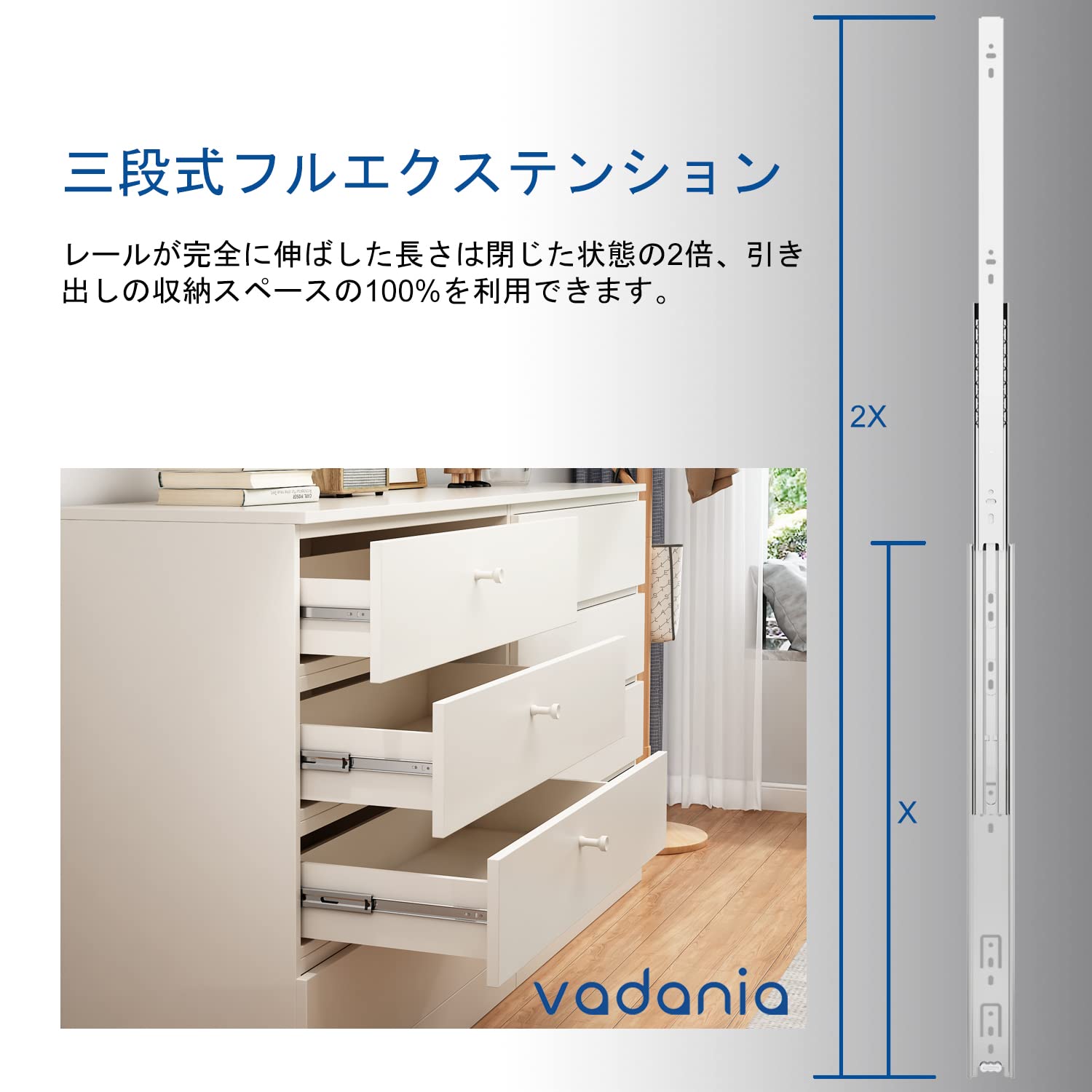 VADANIA スライドレール 350mm 3段引 VA1045 diy 拡張ボール伸縮式 引き出しスライドレール 左右1セット