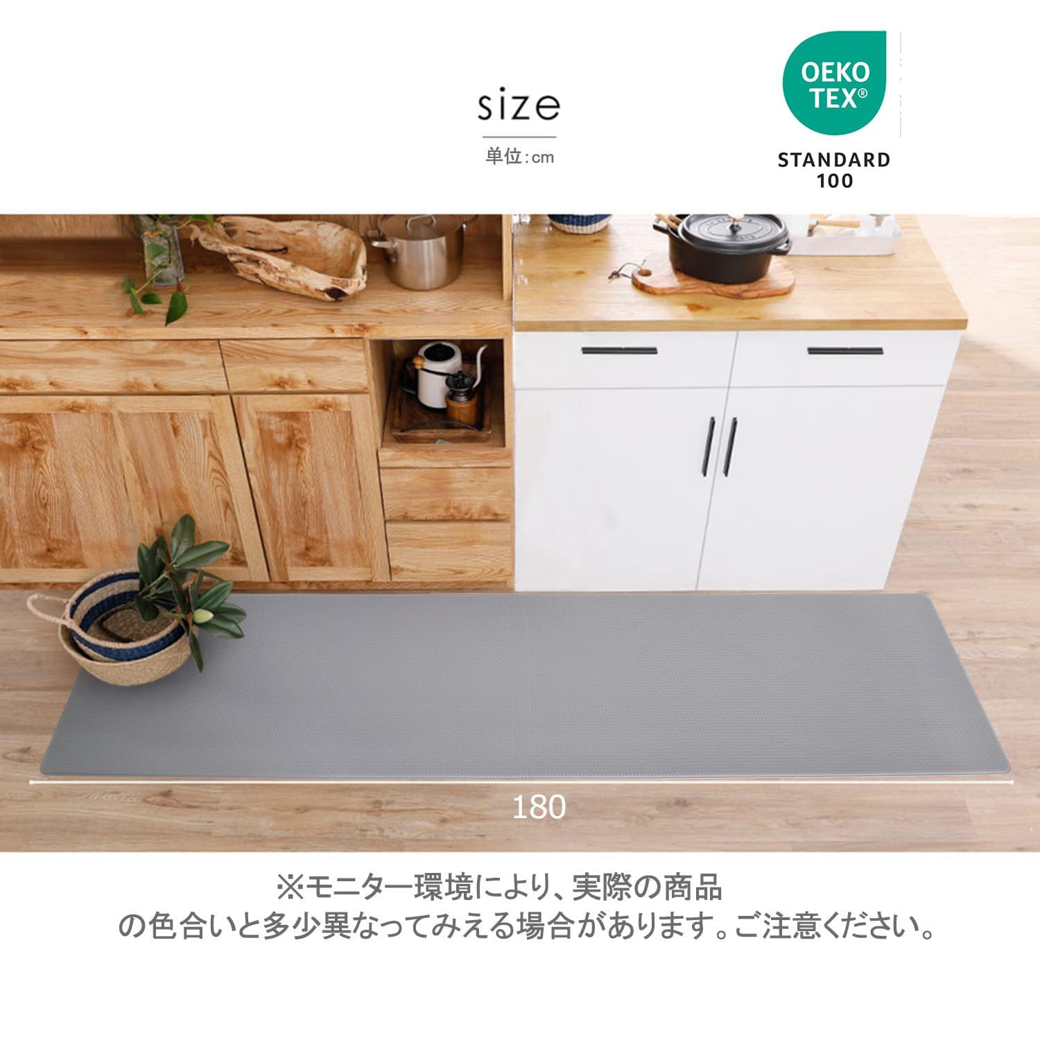 キッチンマット 拭ける 180 北欧 おしゃれ はっ水 無地 洗濯不要 厚さ8mm ずれない 台所 マット フカフカ 厚手 防汚 pvc グレー