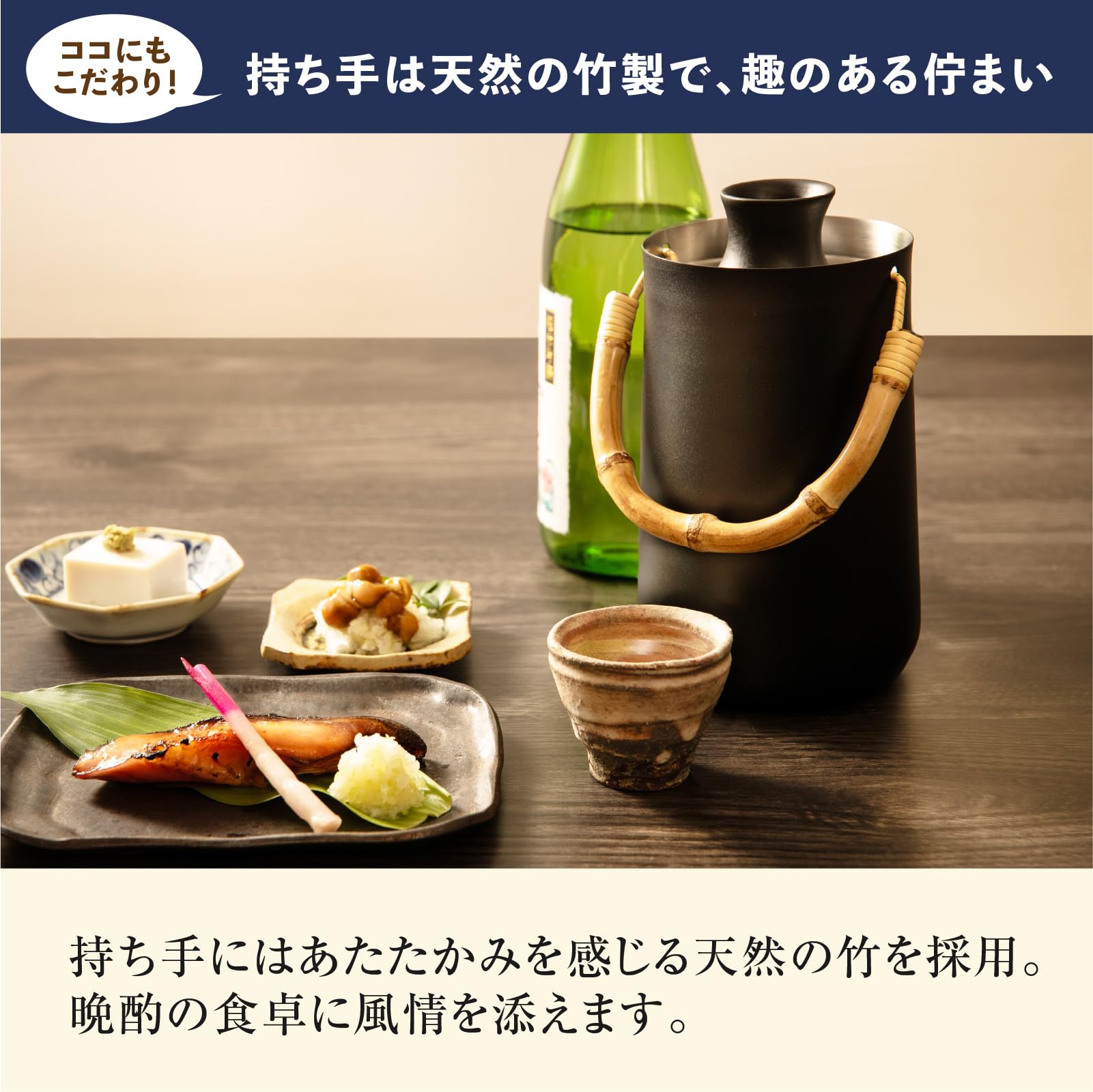 魔法瓶構造の酒燗器●ぬる燗からとびきり燗まで温度調整が可能です●注ぐお湯の量を変えるだけでお好みの温度を作ることが出来ます。●持ち手が付いているので持ち運び便利。●魔法瓶構造による優れた保温性