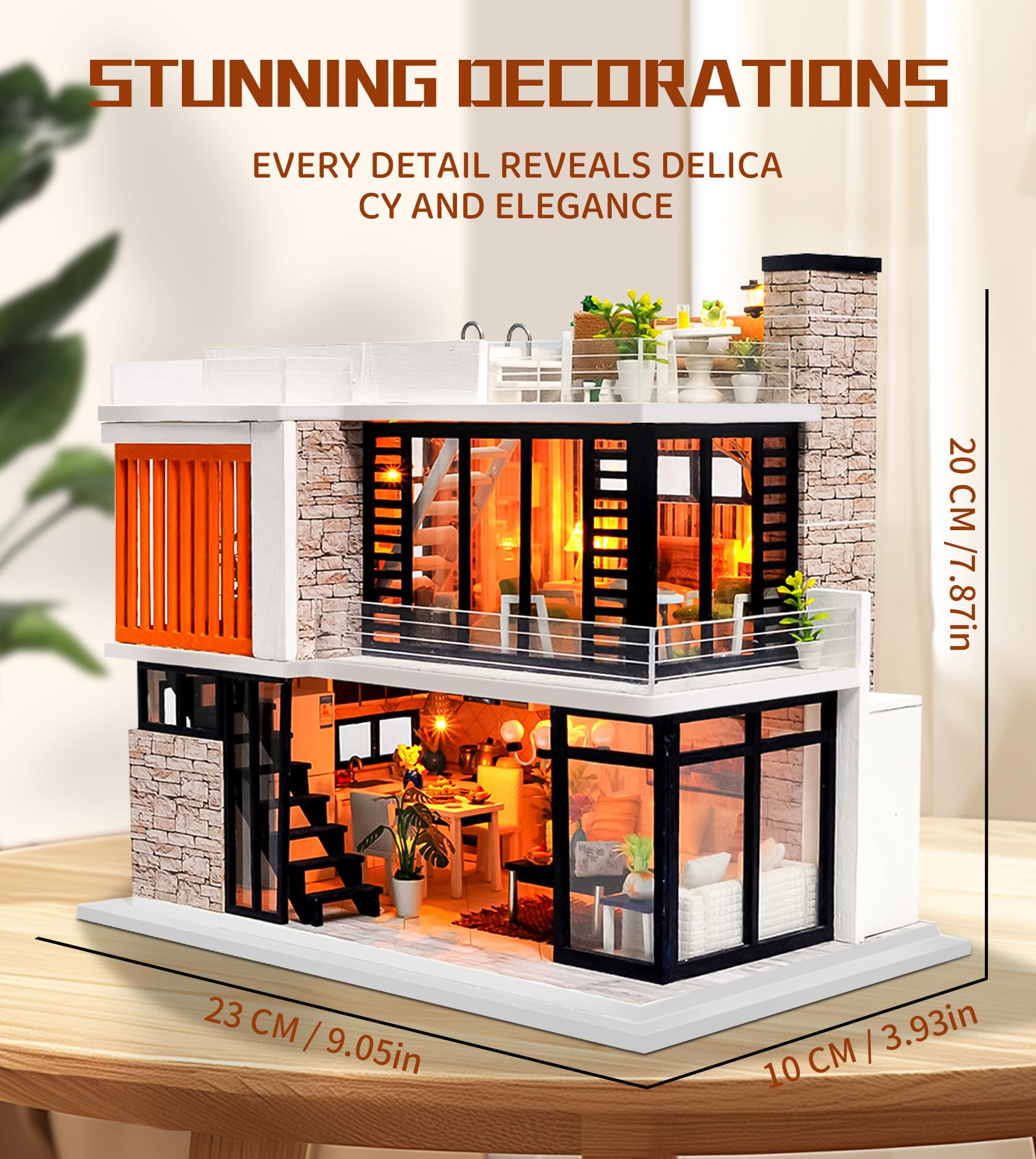【完璧なギフトと優れた家の装飾】DIYミニチュアドールハウスキットは、友達や家族のために非常に良い贈り物。 バレンタイン、誕生日、クリスマス、ハロウィン、父の日、母の日などのプレゼントにもおすすめ。お子様の成長期に大切な「想像力やアイデア」を育てながら遊ぶ。