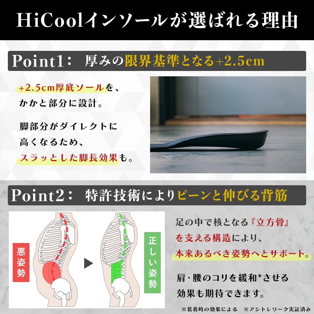 HiCool INSOLE【公式】 厚底インソール 世界特許採用 インソール シークレットインソール 厚底 中敷き 靴 消臭 (Mサイズ25~27.5)