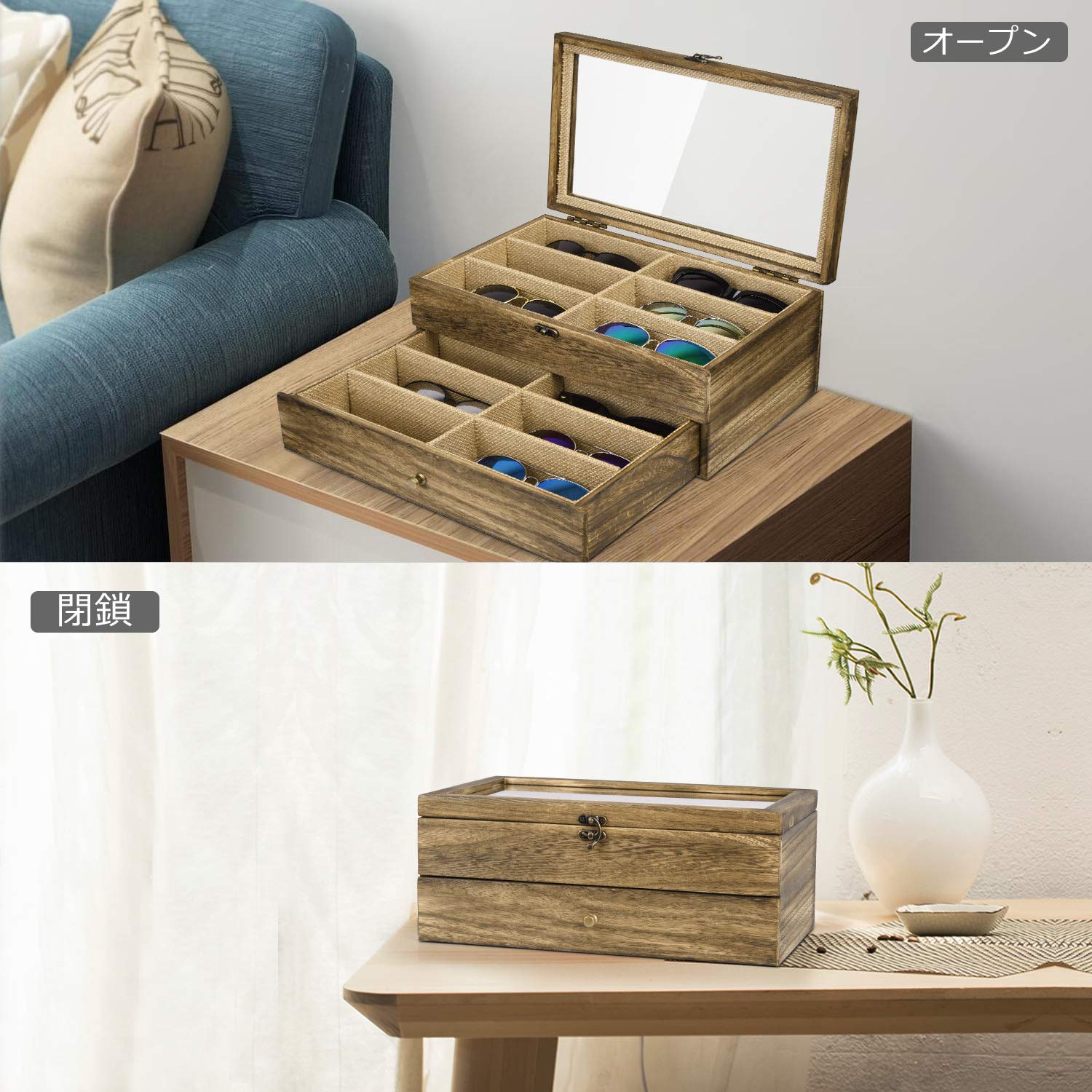 SRIWATANA サングラス収納ケース メガネ収納ボックス コレクションケース ジュエリー収納 2段式 12本用 小物アクセサリ収納整理 眼鏡ケース