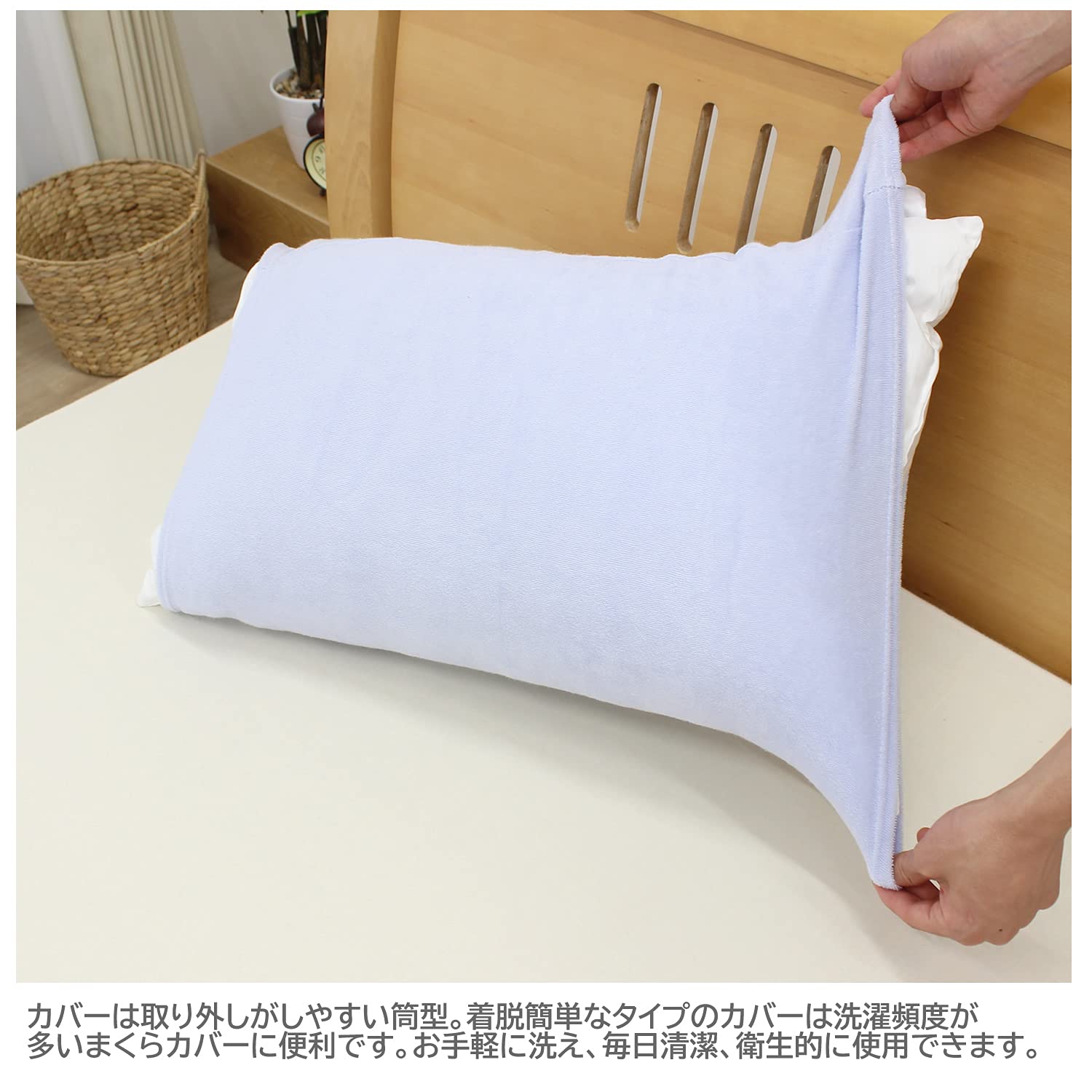 タオルのようなやさしい肌ざわりの枕カバー。吸水性もよいパイル生地でオールシーズン使用可能。カバーの仕様は筒型で伸縮性があり、いろいろな形の枕に使えて便利です。ファスナーが無く 着脱簡単の為、毎日手軽にお洗濯出来て清潔、衛生的に使用できます。