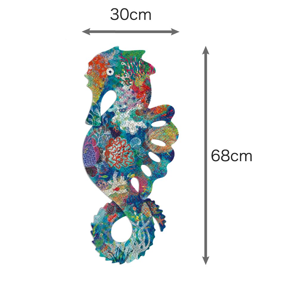 【プレゼント 贈り物】【インテリアにも】完成したパズルはシーホース(タツノオトシゴ)のシルエット。おしゃれなシルエットの中に描かれる綺麗なデザインが人気です。DJECO(ジェコ)の商品は他にはないユニークなデザインなのでプレゼントやお祝いにご愛顧いただいております。完成したパズルはリビングや子供部屋などに飾って頂いても素敵です。