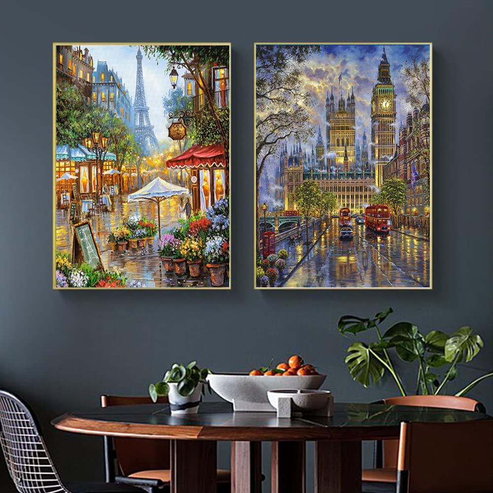 サムコス ダイヤモンドアート キット ダイヤモンドの絵画 2個セット きれい 全面貼り付け ダイヤモンドアート 5D 初心者 大人の子供 DIY 手芸キット 家の壁の装飾 (ストリートビュー)