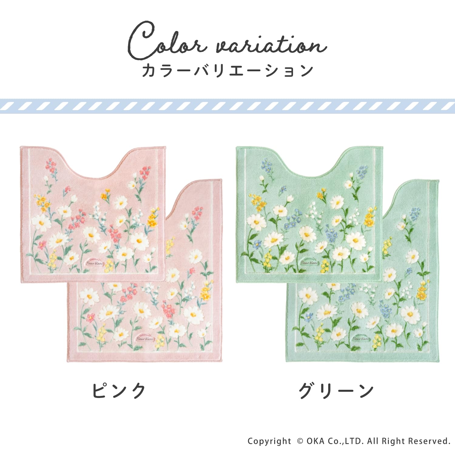 オカ(OKA) フルールブラン トイレマット レギュラー 約55cm×60cm グリーン (洗える 花柄 フェミニン)