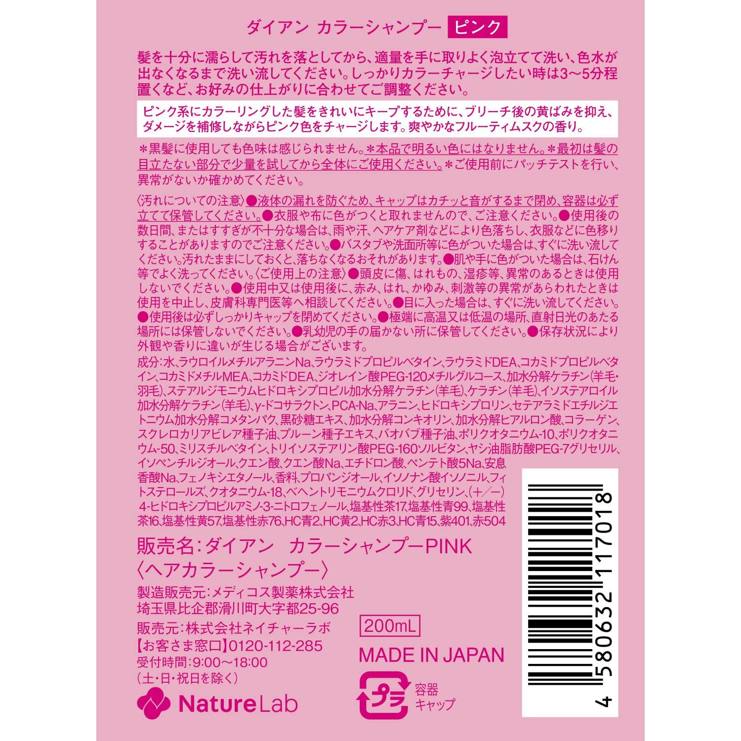 Diane ダイアン カラーシャンプー ピンク [黄ばみを抑えてカラーチャージ&ダメージ補修] 暖色系 200ml