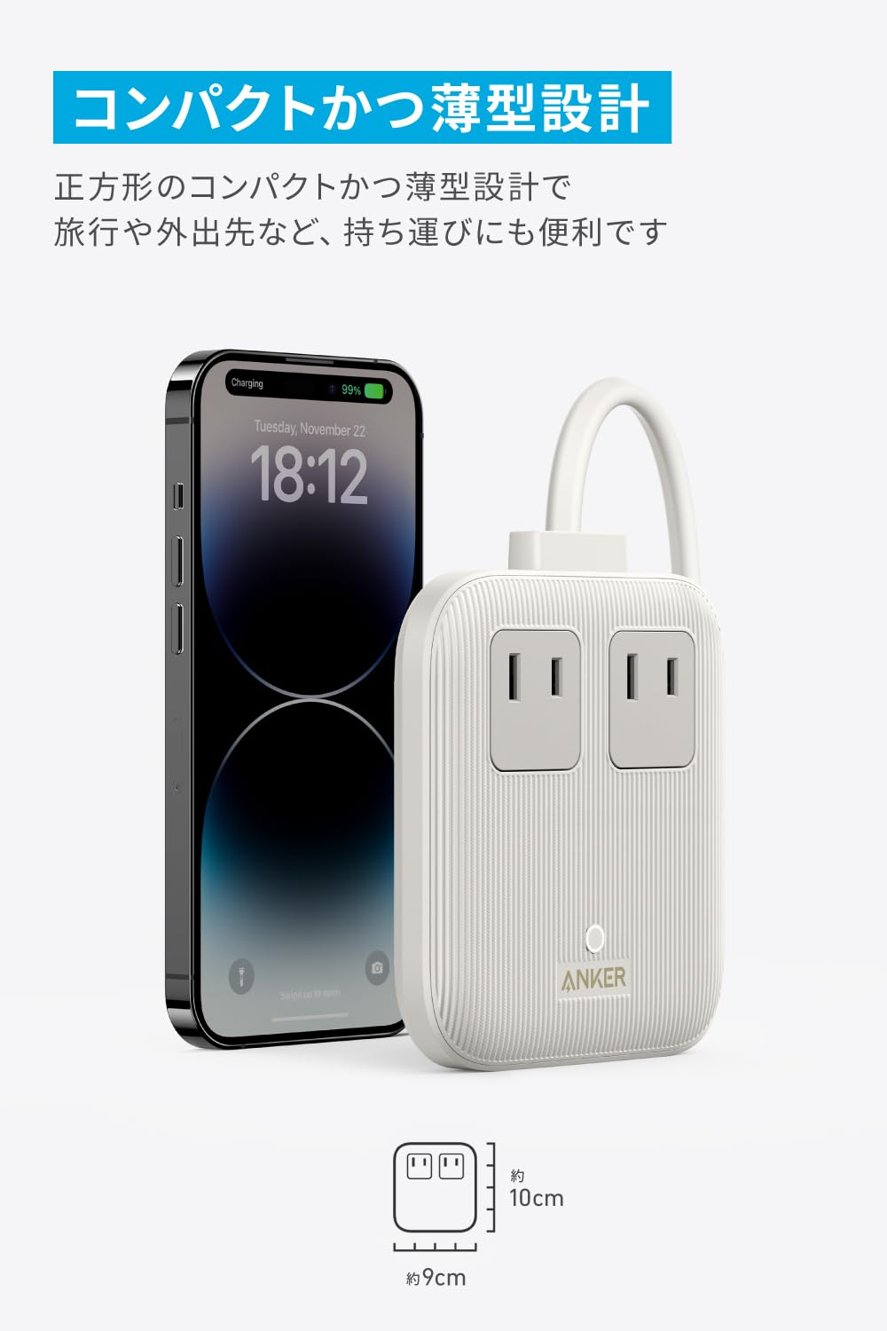 コンパクトかつ薄型設計:正方形のコンパクトかつ薄型設計で旅行や外出先など、持ち運びにも便利です。