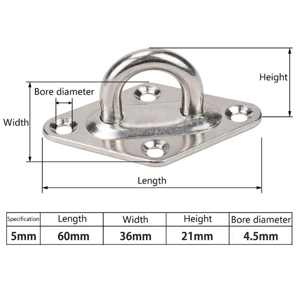 アイプレート 壁 パッドアイ カラビナ 天井 フック 壁 フック 菱形アイプレート 304ステンレス鋼 取り付け金具 木製ドア 戸棚 灯 用 パッドアイ ネジとゴム栓付き (パッドアイ6個+カラビナ6個+マッチングネジ)