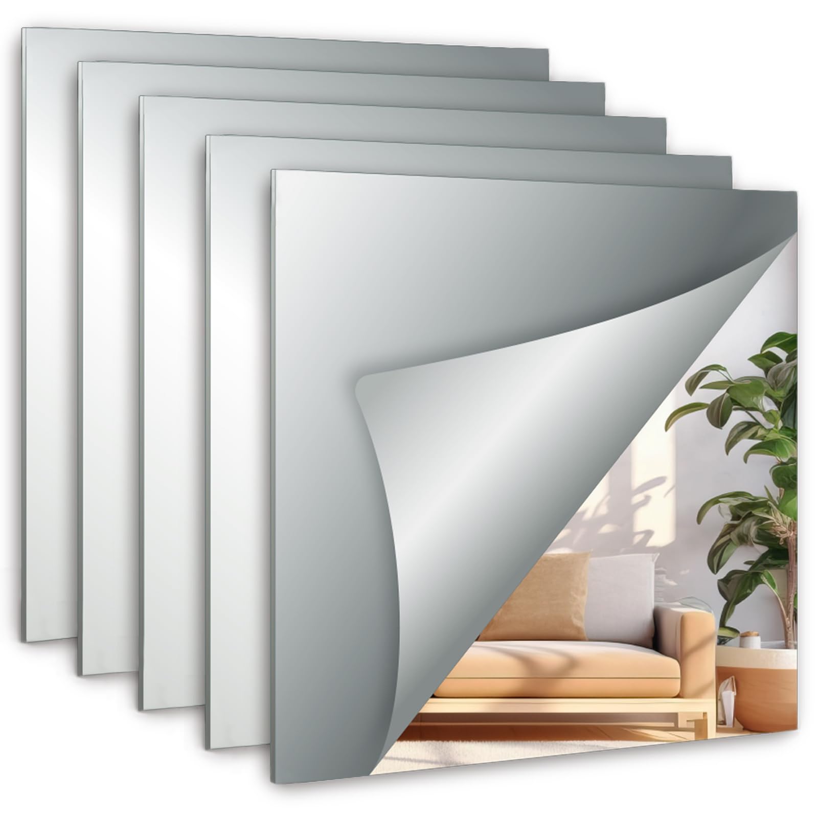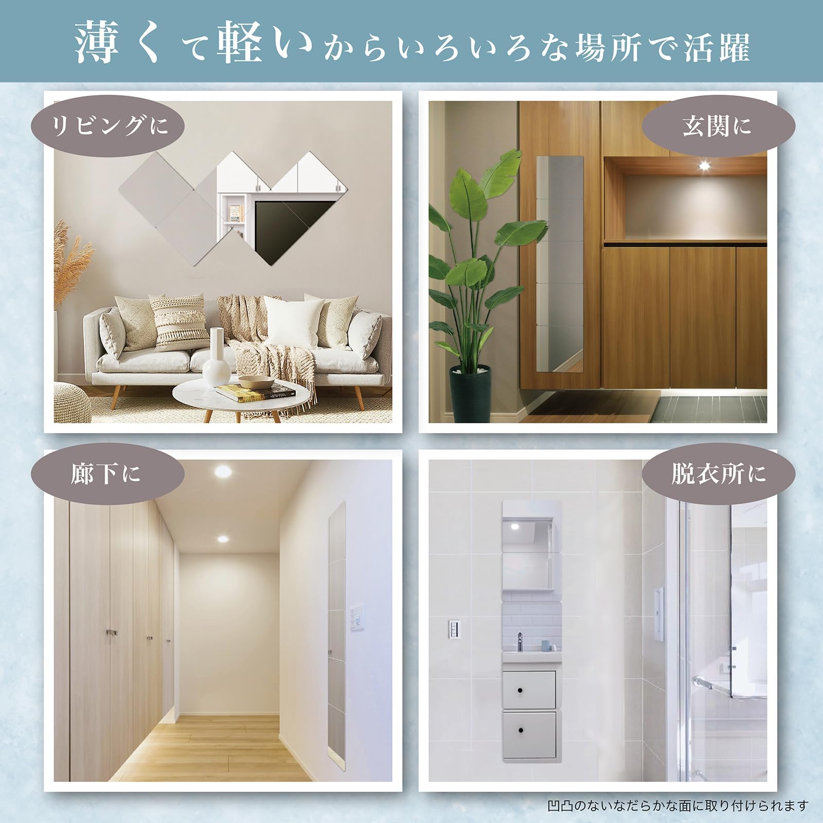 割れない鏡 貼る ミラー 全身鏡 ケガ防止 5枚セット 30cm×30cm アクリル ミラー 飛散防止 二次災害防止 穴あけ不要 賃貸OK 貼付け可能 両面シールつき 軽量