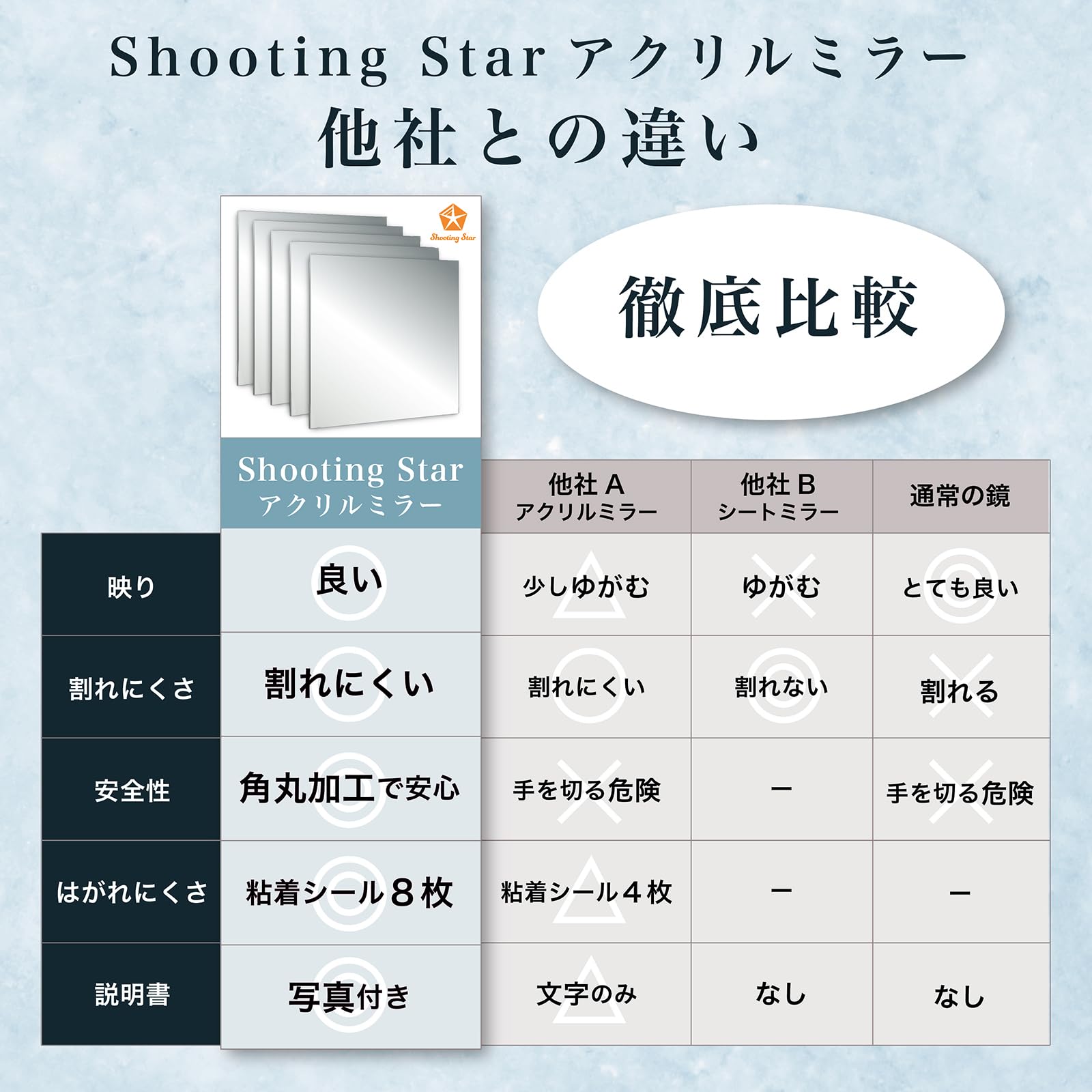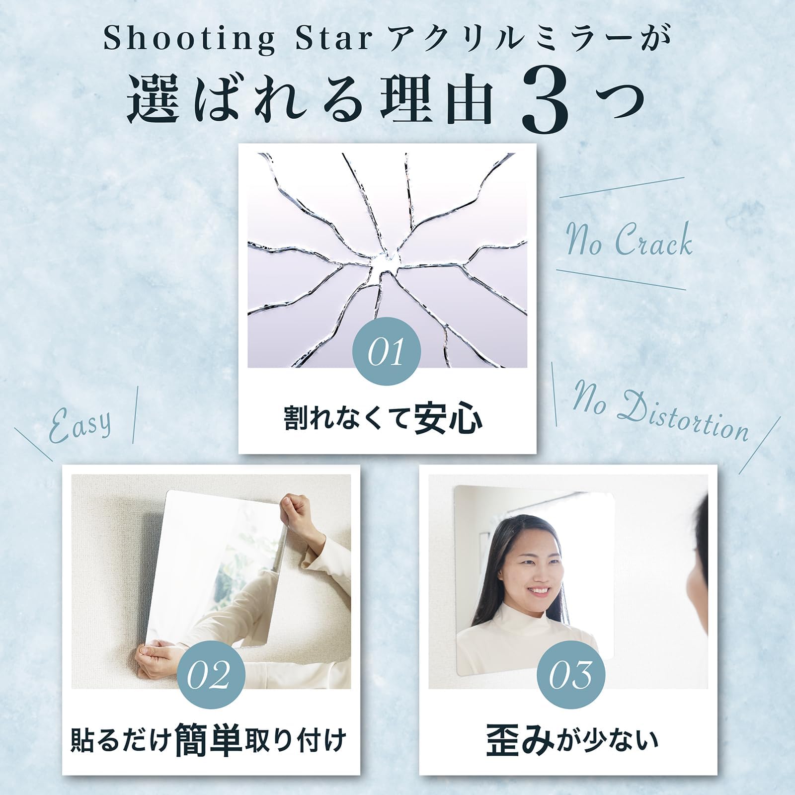 [shooting star] 割れない鏡 貼る ミラー 全身鏡 ケガ防止 5枚セット 30cm×30cm アクリル ミラー 飛散防止 二次災害防止 穴あけ不要 賃貸OK 貼付け可能 両面シールつき 軽量 (角:直角)