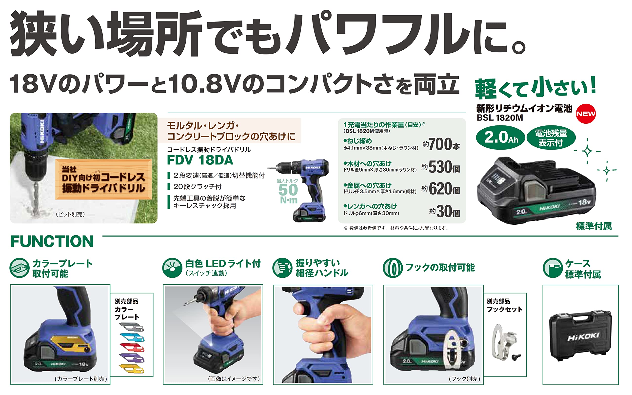 HiKOKI(ハイコーキ) 18V コードレス 振動ドライバドリル チャック 2.0~13mm 20段クラッチ 2.0Ah 蓄電池×2個 充電器 ケース付 FDV18DA(2BG)