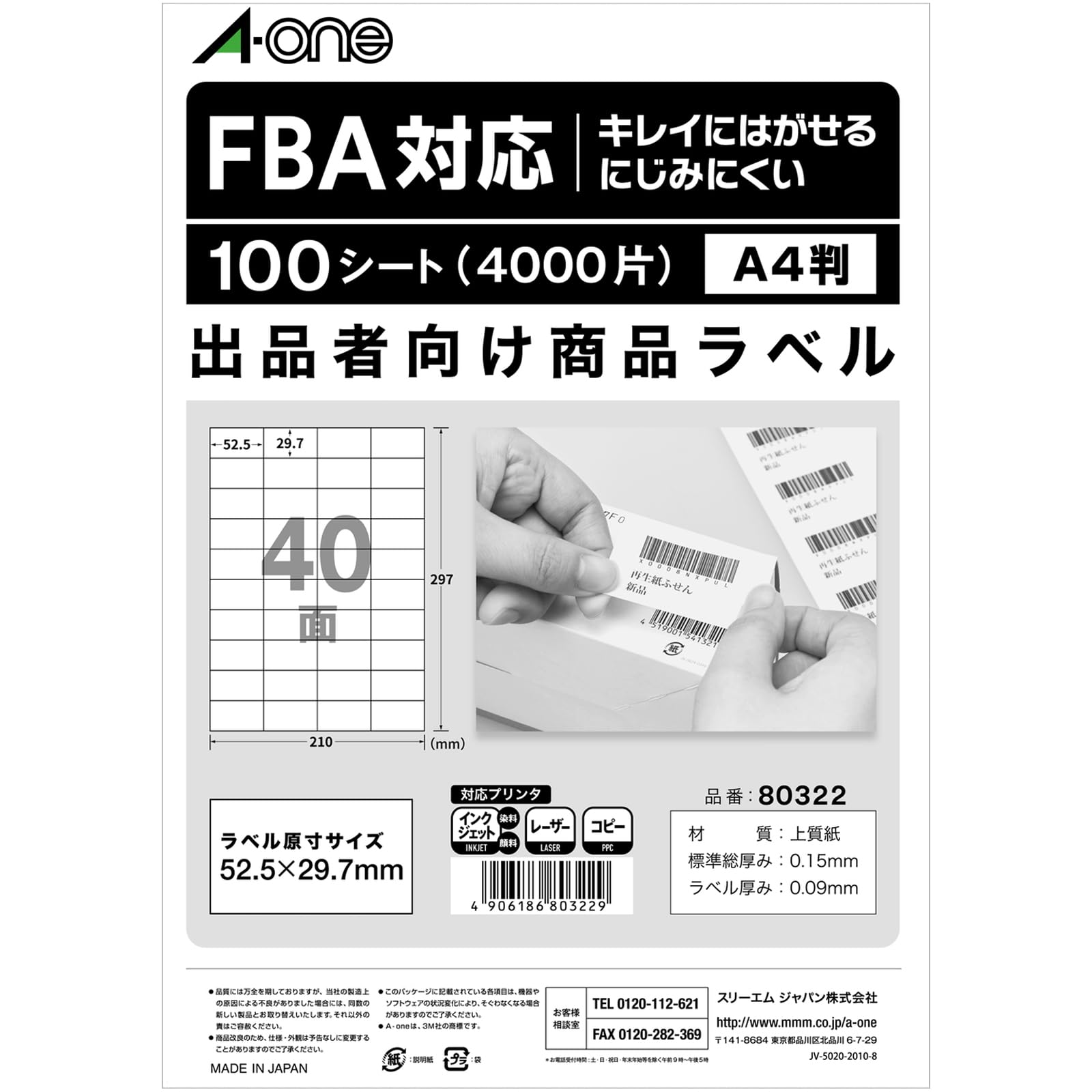 ・出品の際に貼る商品ラベルに適した40面のラベルがリニューアルして新登場。(FBA対応タイプ)