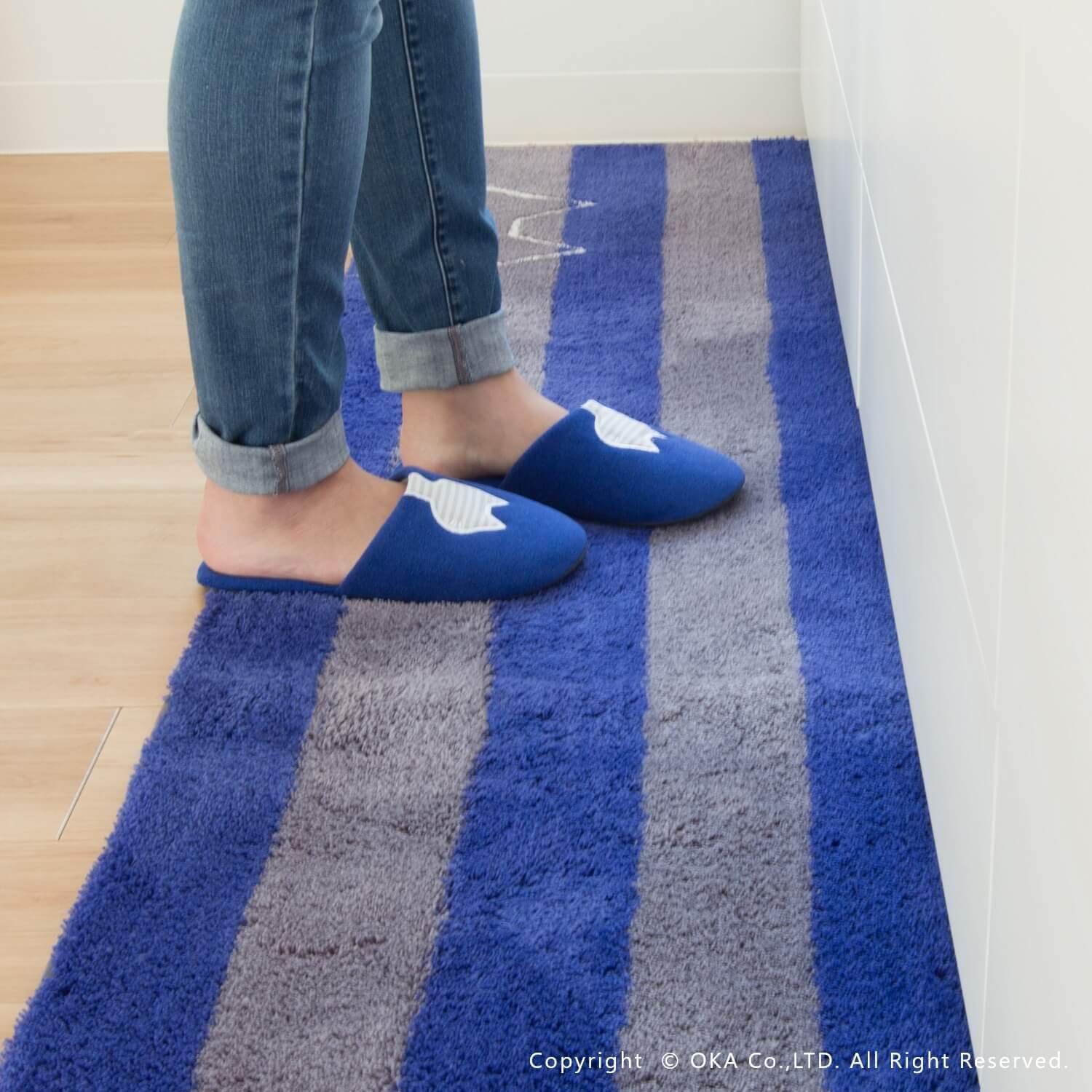 オカ うちねこ キッチンマット 約45×240cm (ブルー)