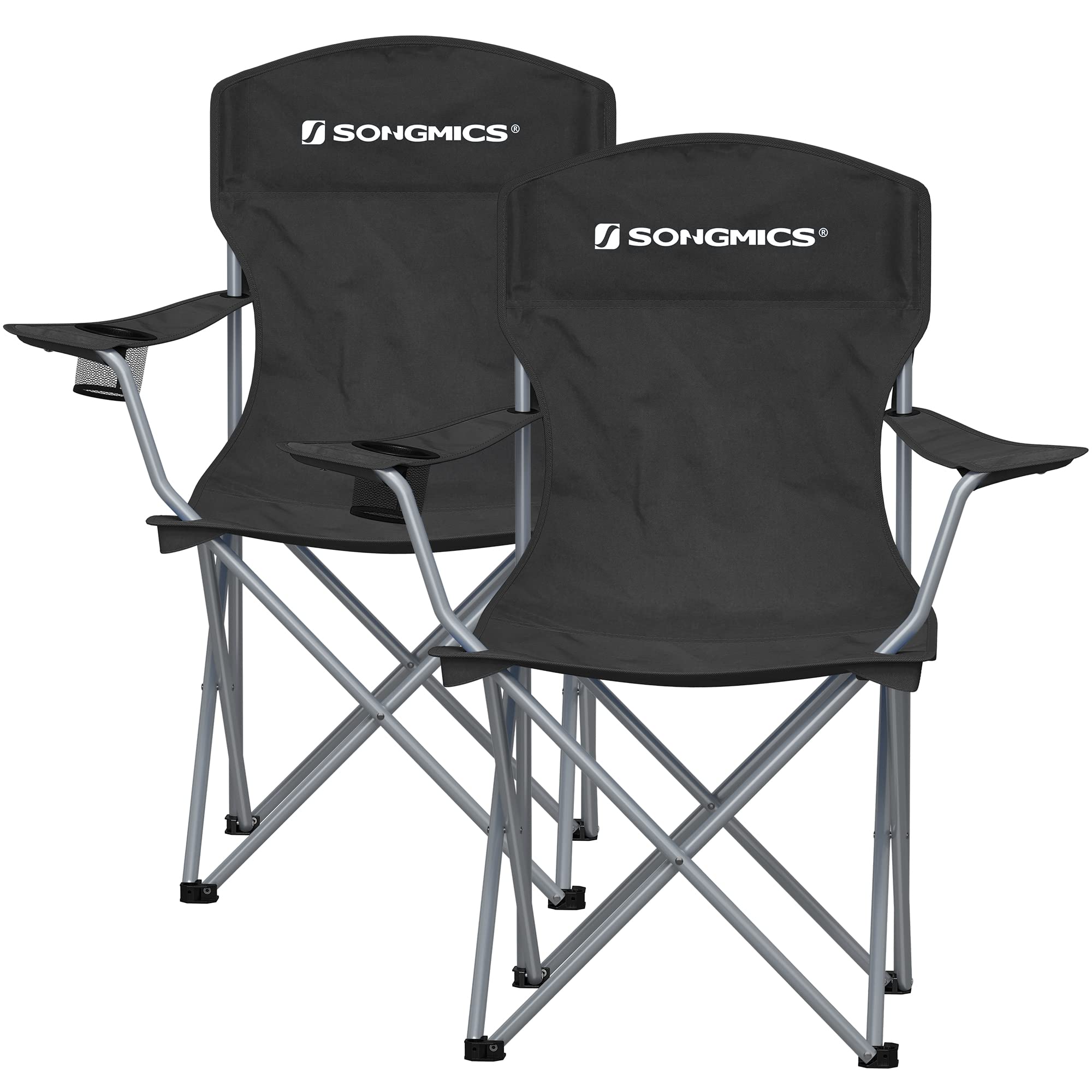 SONGMICS アウトドアチェア 2脚セット 耐荷重150kg ハイバック 軽量 コンパクト キャンプ椅子 折り畳み式 持ち運びやすい 収納ケース付 ブラック 防水 アウトドア椅子 お釣り 運動会 GCB08BK