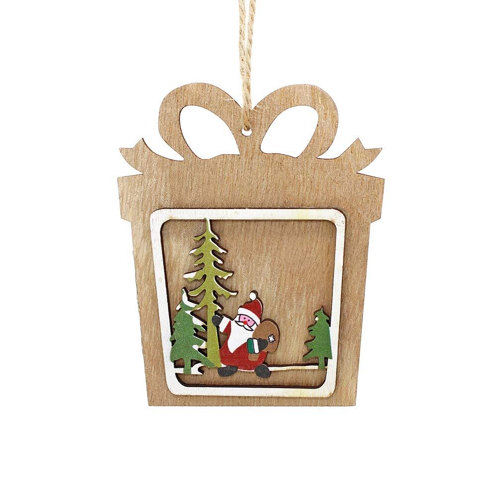 木製 透かし彫り 立体 クリスマス飾り 室内飾り 壁掛け 掛物 【ギフトボックス、クリスマスツリー、クリスマスの星】3個入