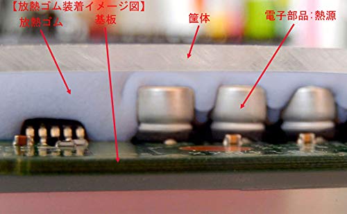 柔らか素材の高性能放熱ゴム。すき間(ギャップ)を埋める熱伝導材。基板等に貼る場合、非常に柔らかい素材ですので、装着表面が不均一でも全体の接触面をカバーし、それぞれの部品または基板全体から効率よく熱を吸収し、ヒートシンクや放熱体に熱を伝えることができます。柔らかい素材なので基板や筐体に負荷がかかりません。熱源に放熱ゴムを貼り、熱を逃がしたい放熱体・筐体に密着させ使用します。