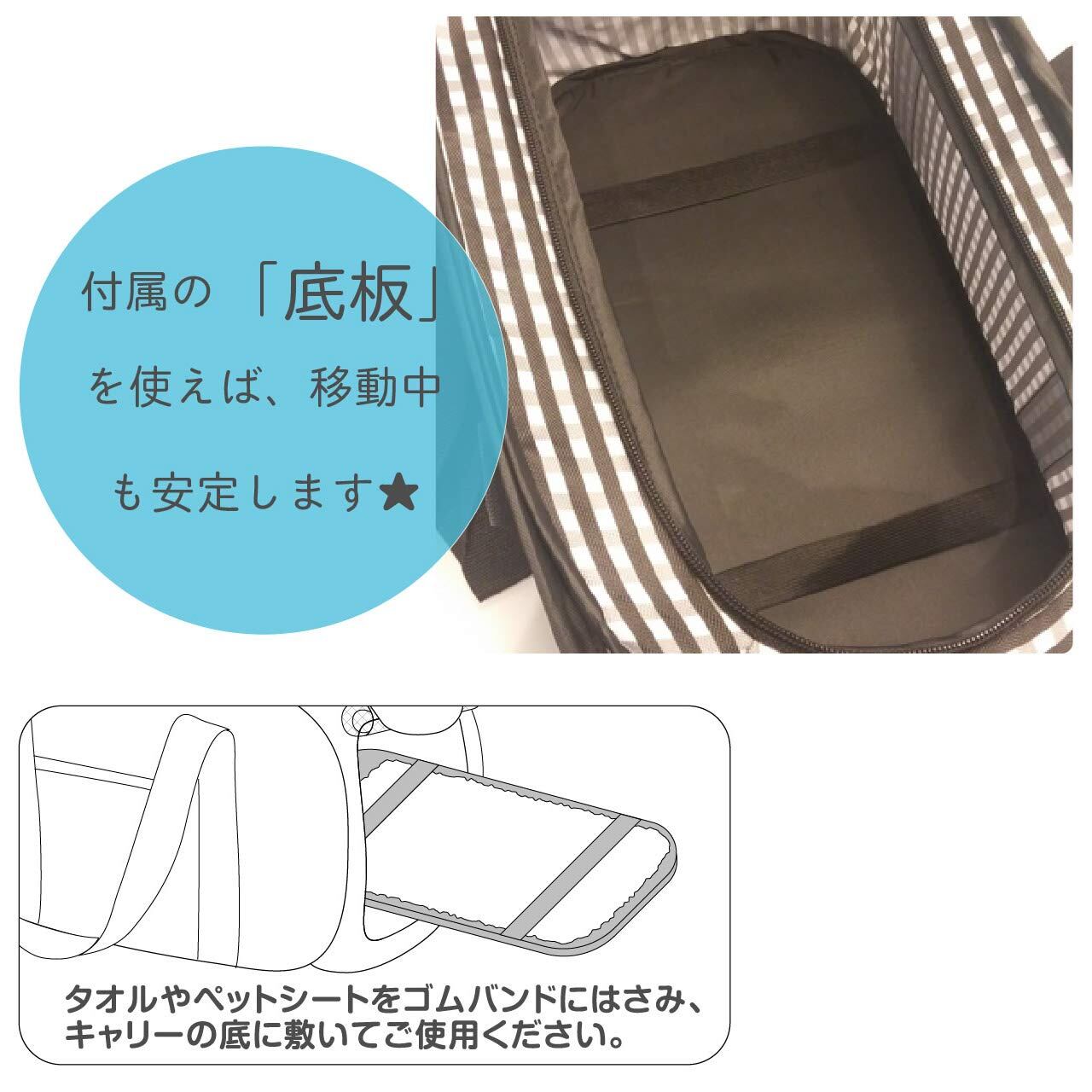 【取り外し可能な底板&おちつくネットを付属】ポータブルキャリーには別売りもしている「おちつくネット」を付属しています。キャリーに入るのが苦手な猫でも安心。通院時もネットに入ったまま診察を受けられます。取り外し可能な底板はゴムバンド付き。猫のお気に入りのタオルやペットシーツを固定して使用できます。2箇所の収納ポケットがあるので、ペットシーツの替えを入れておくこともできます。