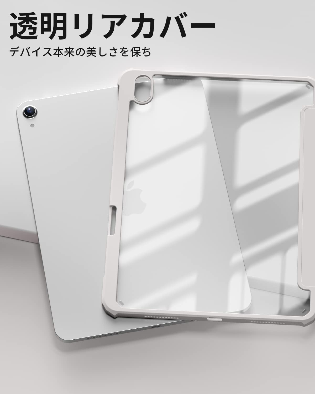 【材料・透明バックカバー】 ケースの表面はPUレザー素材を利用して、軽量、超薄を備えます。ポリカーボネート素材を採用している透明バックカバーは汚れや傷つけなどを防止するだけでなく、iPad本体の色と美しさも活かせます。透明バックカバーの枠は柔軟な TPUを採用して、取り付けも簡単にできます。フロントカバー内部材質はマイクロファイバーで、摩擦によって発生する傷を抑え、液晶画面を保護しきれいに保ちます。