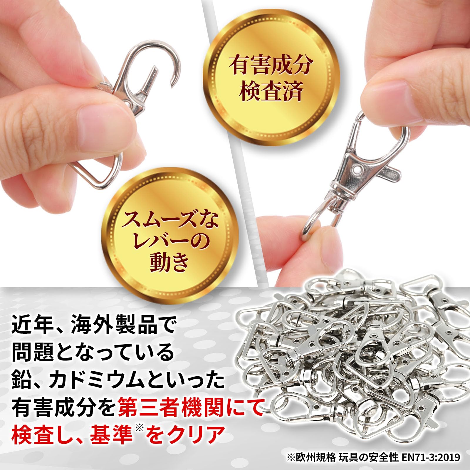 全ての商品を日本国内で検品しております。レバーの開閉やサイズ違いなどを1個1個、手作業・目視にて確認しています。