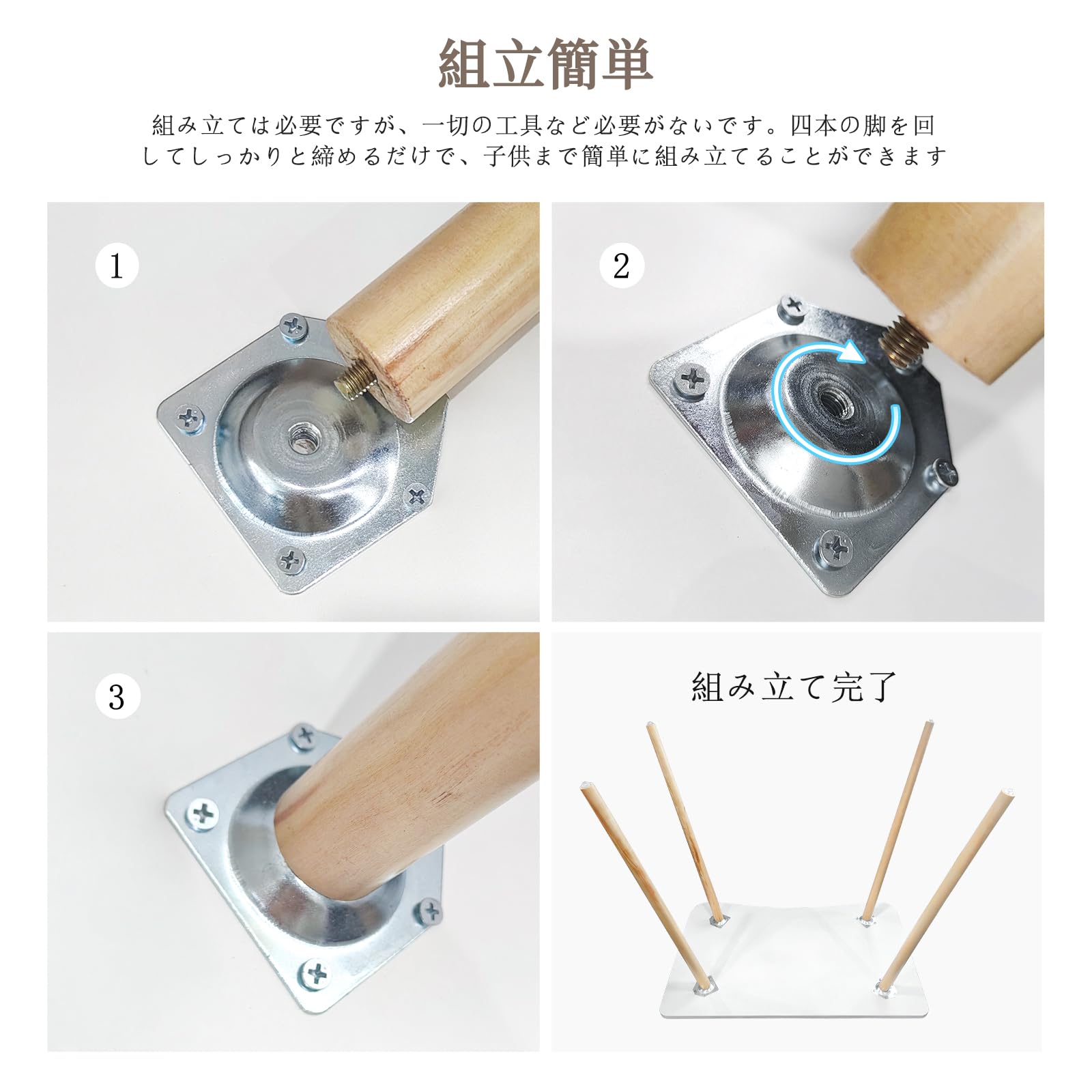 【簡単な組み立て】このデスクは、簡単に組み立てることができ、工具も使わず机の4本の脚を机の天板の背面に時計回りに回すだけですぐ使えます。初心者でも安心して組み立てられます。学習机や作業台としても利用できます。必要に応じて用途を変えられる柔軟性が、このデスクの大きな魅力です。