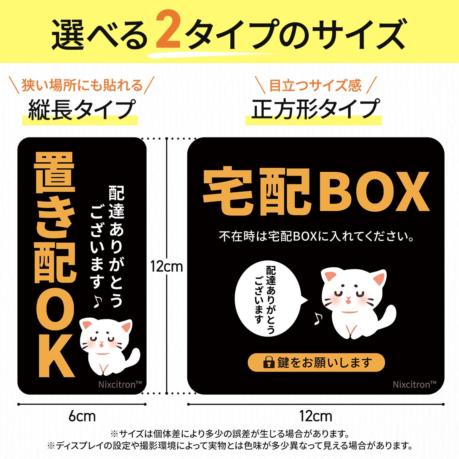 宅配ボックス ステッカー 置き配 ステッカー対応 宅配ボックス シールで簡単配送案内 ネコデザイン 12×12cm 防水・屋外対応(TK-ST)