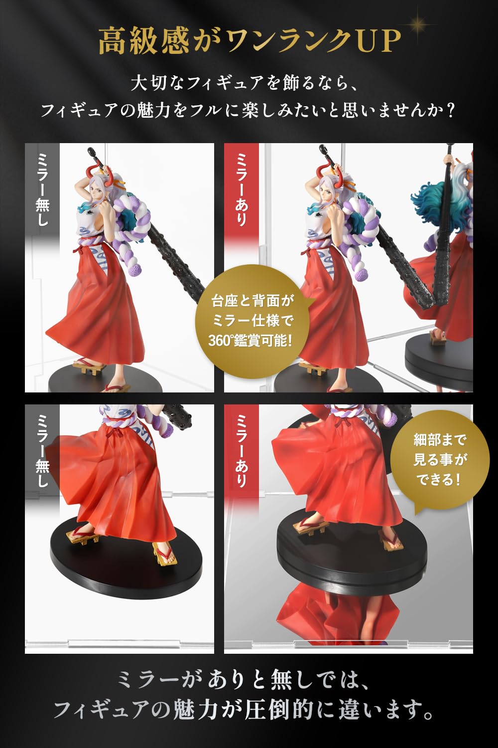 【魅力が圧倒的に違う】台座と背面をミラー仕様にすることにより、よりフィギュアの魅力を引き立てます。美少女フィギュア好きにはたまりません。