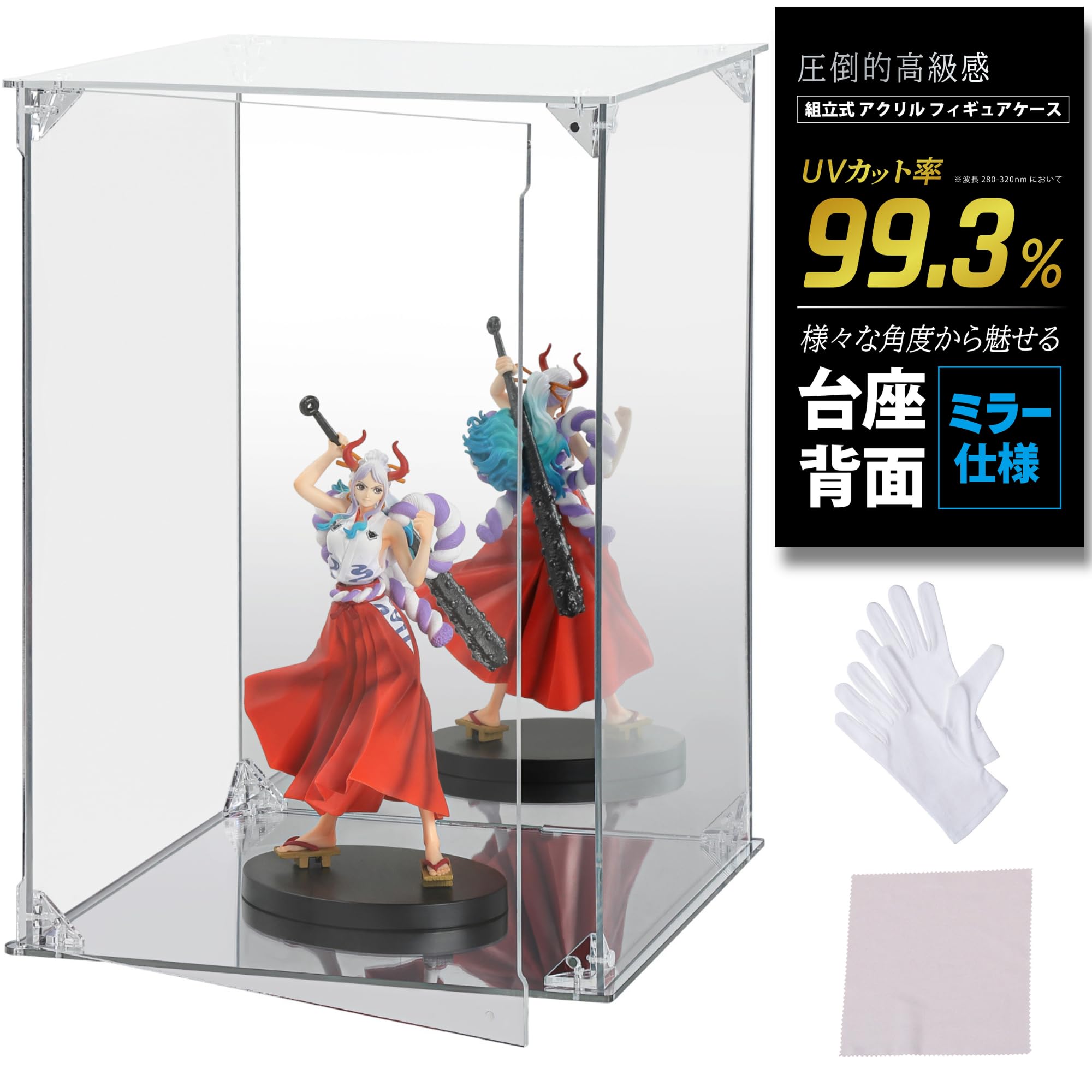 【UVカット99.3%】フィギュアケース【台座・背面ミラー】【フィギュアコレクター考案】 アクリル【マグネット付き 前扉】クリア 棚 コレクション ディスプレイ HYPE GUARD®【公式】