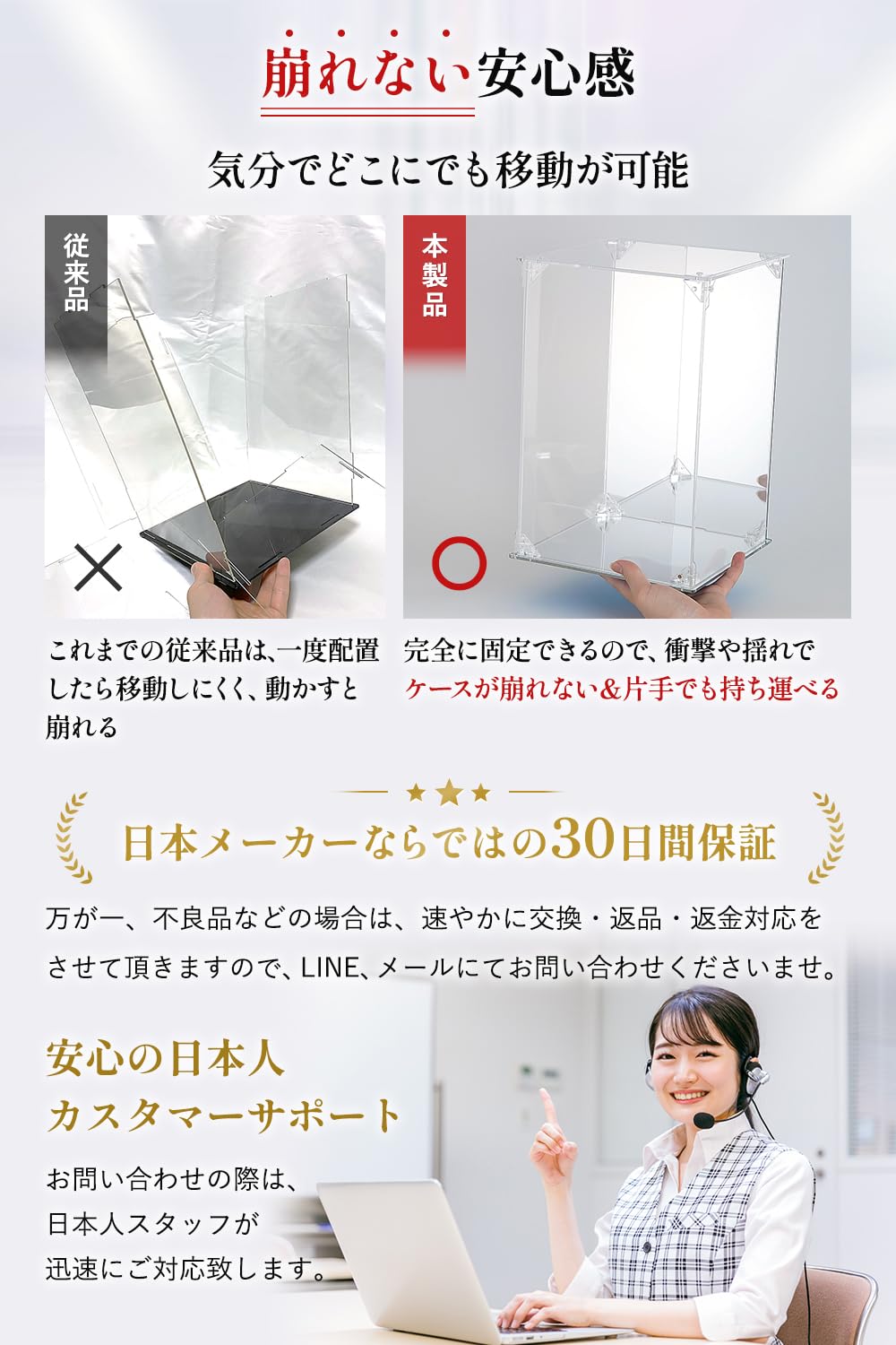 【商品詳細】(内寸)横幅20×奥行20×高さ30cm。UVカット。台座・背面ミラー仕様。保護フィルム付。マグネット前扉。素材:アクリル