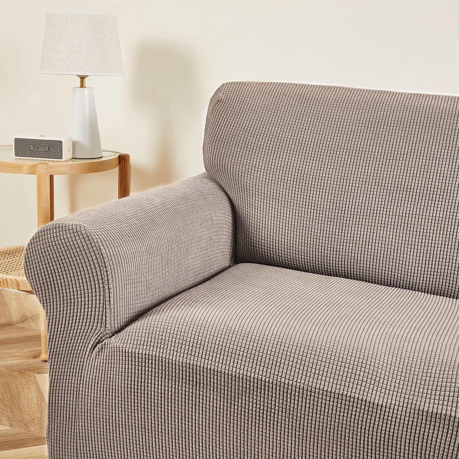Topfinel ソファーカバー 3人掛け 肘付き 無地 北欧風 ストレッチ フィットタイプ 伸縮素材伸び良く 滑り止め 柔らかい 犬 猫 傷 防止 超便利 四季適用(タウプ)