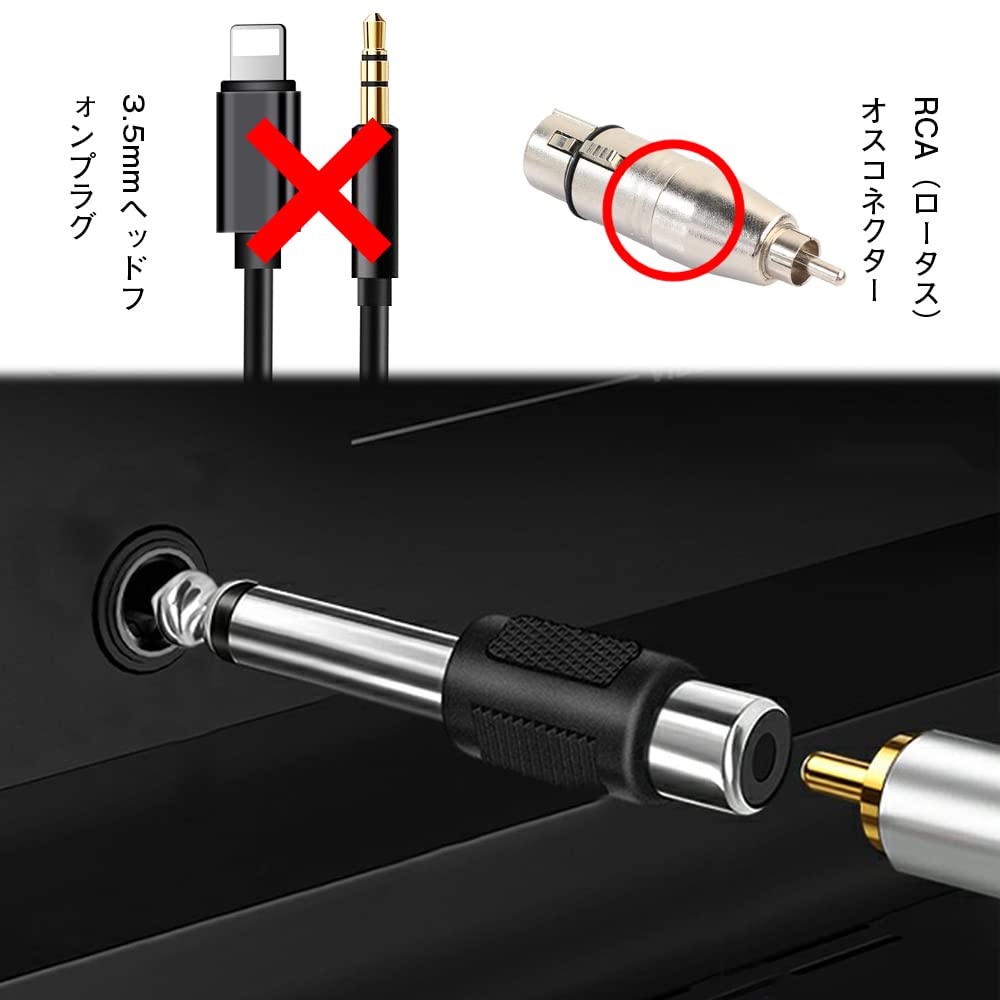 3.5mm 6.35mm 変換アダプタ 変換アダプタ オーディオケーブル ステレオミニプラグ(メス)⇒ステレオ標準プラグ(オス) スピーカー ミキサーなど用対応 標準アダプタコネクタ ミニプラグ(6.35 モノラル - RCAコネクター、5個入り、ブラック)