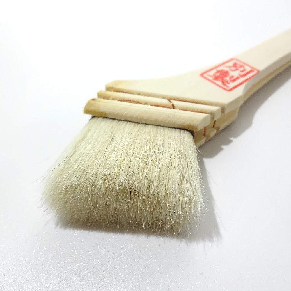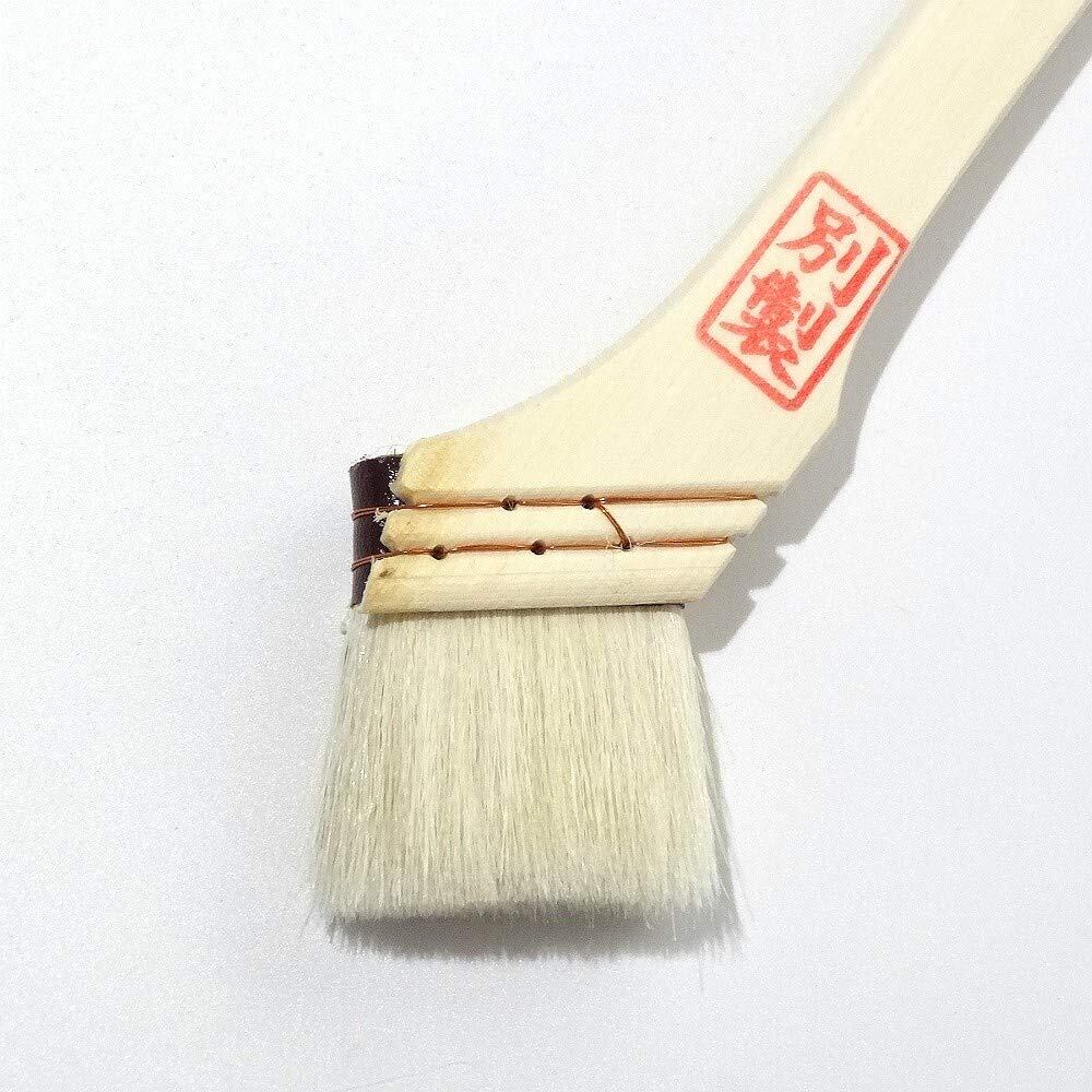 こちらの刷毛は柔らかい白山羊毛、しかも先毛を使用しています。 品質の良い刷毛の毛先は、カットされていない為に先に向かって少しずつ自然に細くなっています。 この毛先が塗料を塗った時に刷毛目がたたないように塗るための重要な条件となります。 (刷毛の材料として使用する原毛の中には、長い毛をカットして使用するものがあります。 その場合、毛先はカットされているために、ブツ切りになっています。カットされた部分に角が出るために刷毛目が出やすくなります。) このニス刷毛白毛別製はコストを少しでも抑える為に、薄口に設計されています。 使用可能塗料は油性です。水性塗料には向いていません。 時代と逆行するかもしれませんが、最近は刷毛等を洗浄するシンナーの価格が高くなっており、使い捨てにされる職人さんが多いようです。 丸一日使用できれば、この刷毛は使い捨て用には最適かもしれません。一度使い勝手をお試し下さいませ。