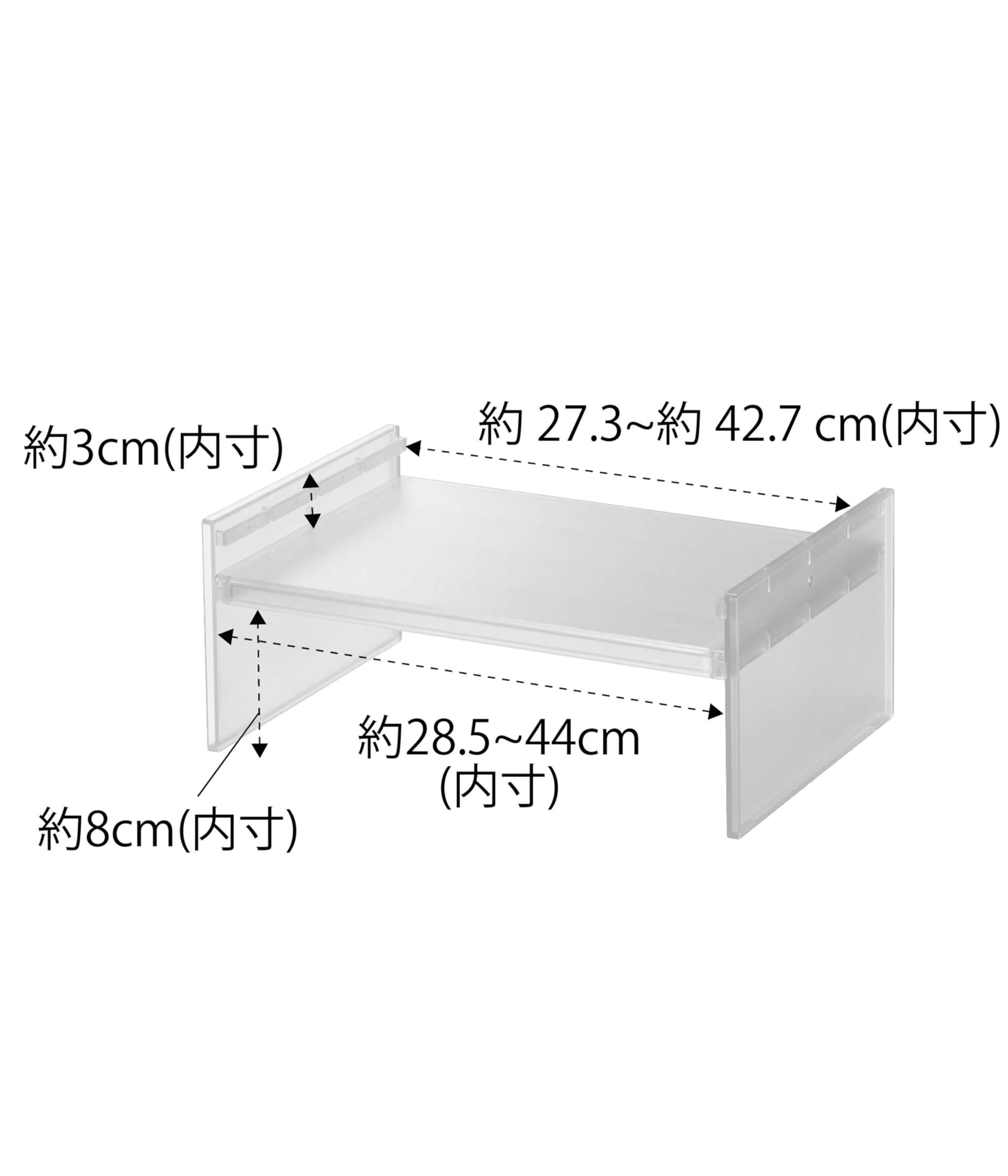 幅と高さが調節できる、伸縮式の冷蔵庫中収納ラック。