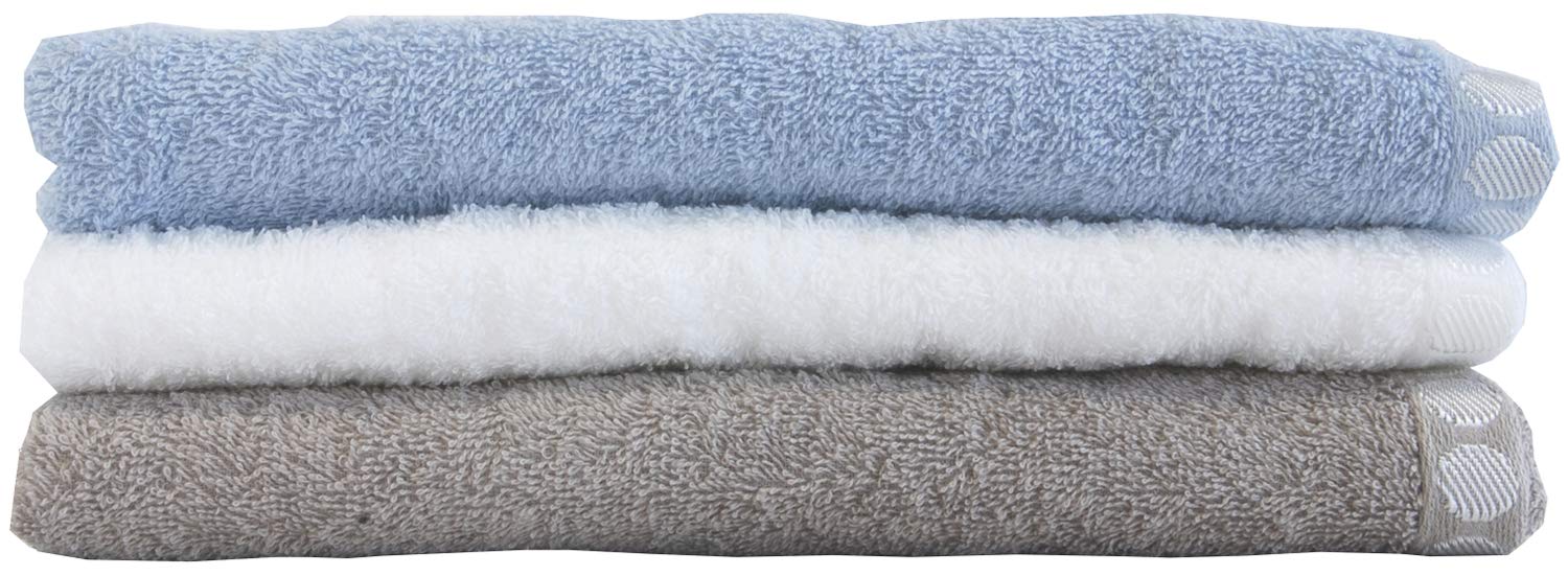 セット内容:フェイスタオル ×3枚 (ブルー・ホワイト・グレー ×各1枚)
