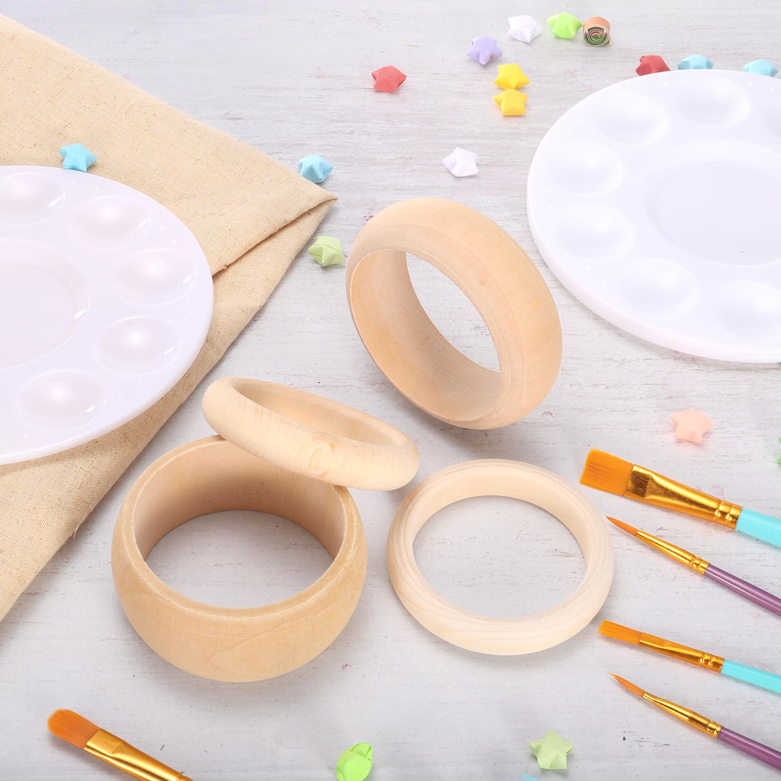 [クリエイティブなDIYプロジェクト] - これらの木製リングを使って創造力を発揮しましょう。木製ブレスレットを塗装、染色、彫刻することで、素晴らしいマクラメビーズ、ドリームキャッチャーなどを作成することができます。木製クラフトの世界を探索し、これらの多目的で美しい木製リングで想像力を広げましょう。
