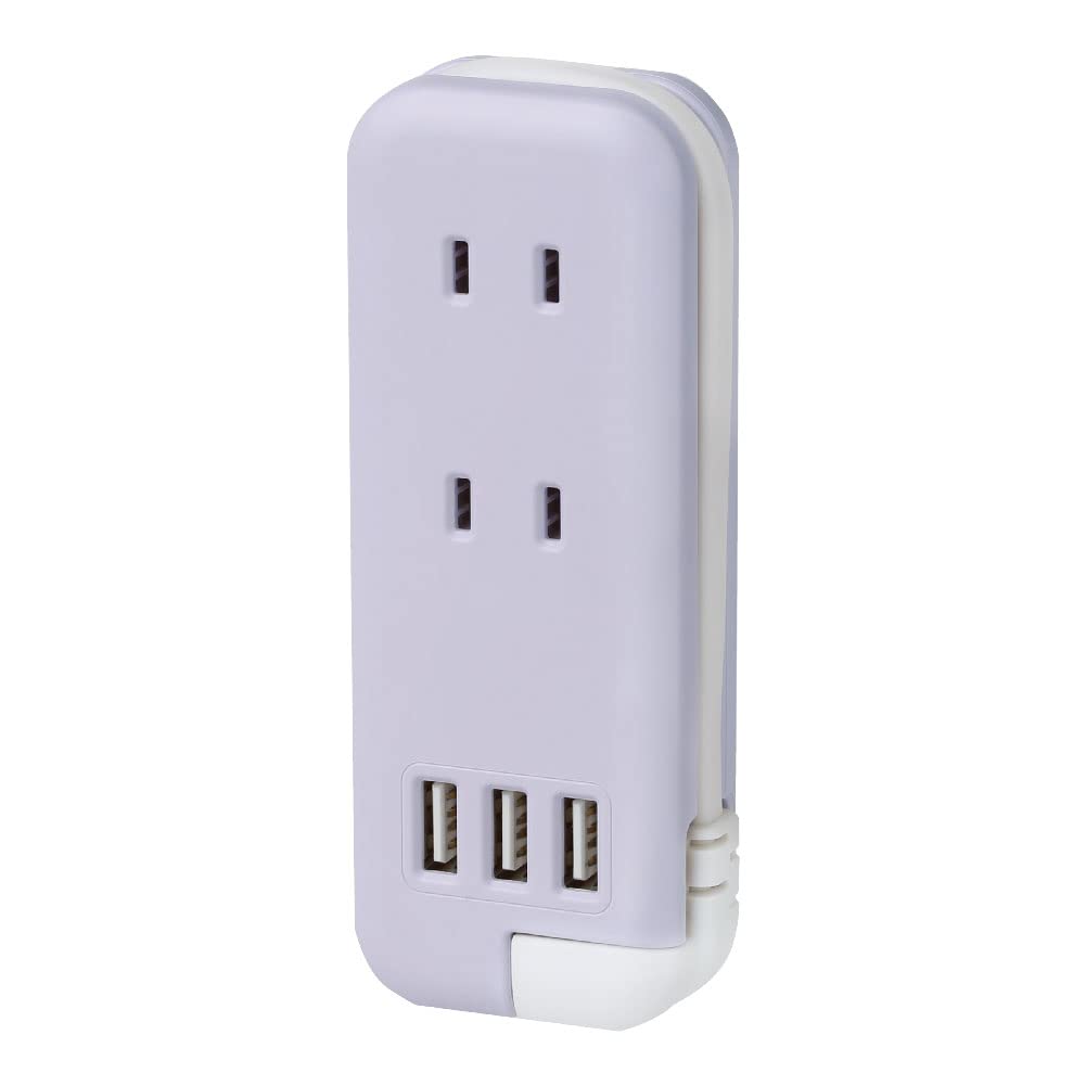 ソニック ポータブルコンセント ユートリムエル スリム ポーチ付 USB-A×3 バイオレット UL-6345-V