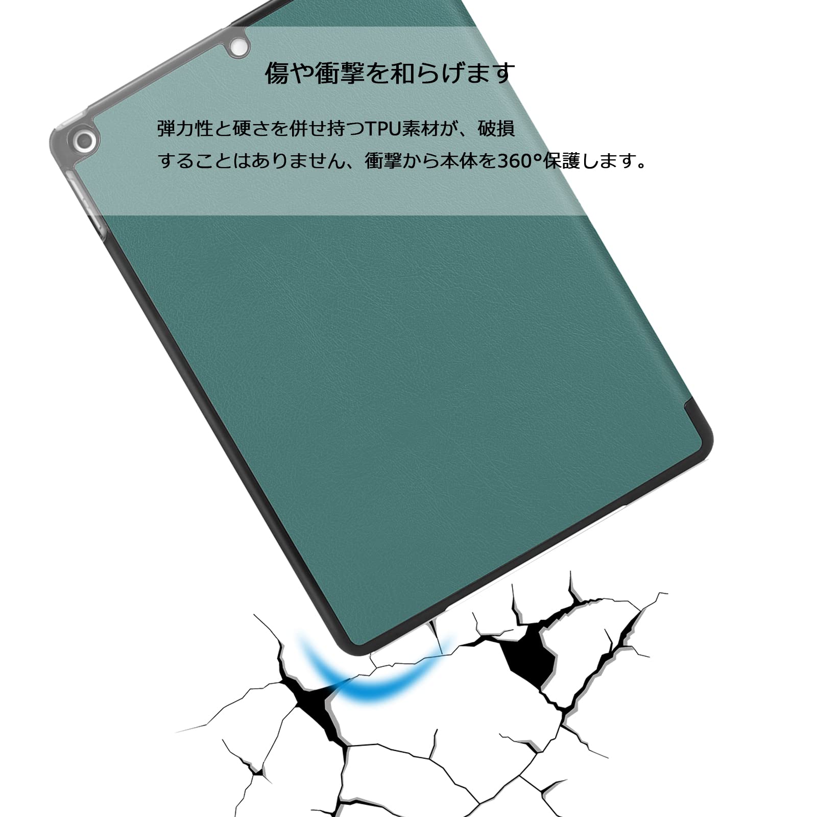 【擦り傷防止】傷や汚れが付きにくいソフトレザー素材を使用しています。弾力性と硬さを併せ持つTPU素材が、軽量で耐久性があり。iPad への傷や衝撃を和らげます。