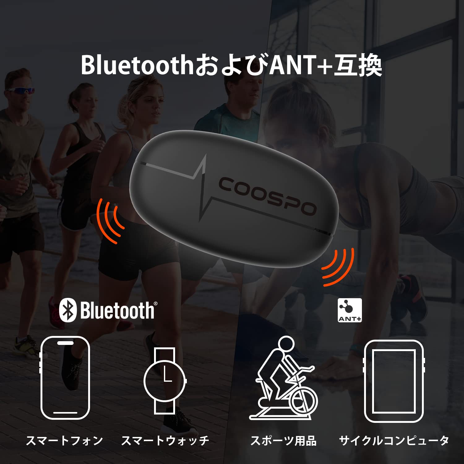 CooSpo 心拍センサー 心拍数モニターセンサー ハートレートモニター 心拍計Bluetooth 4.0&ANT+ サポート スマートフォン サイクルコンピュータ接続