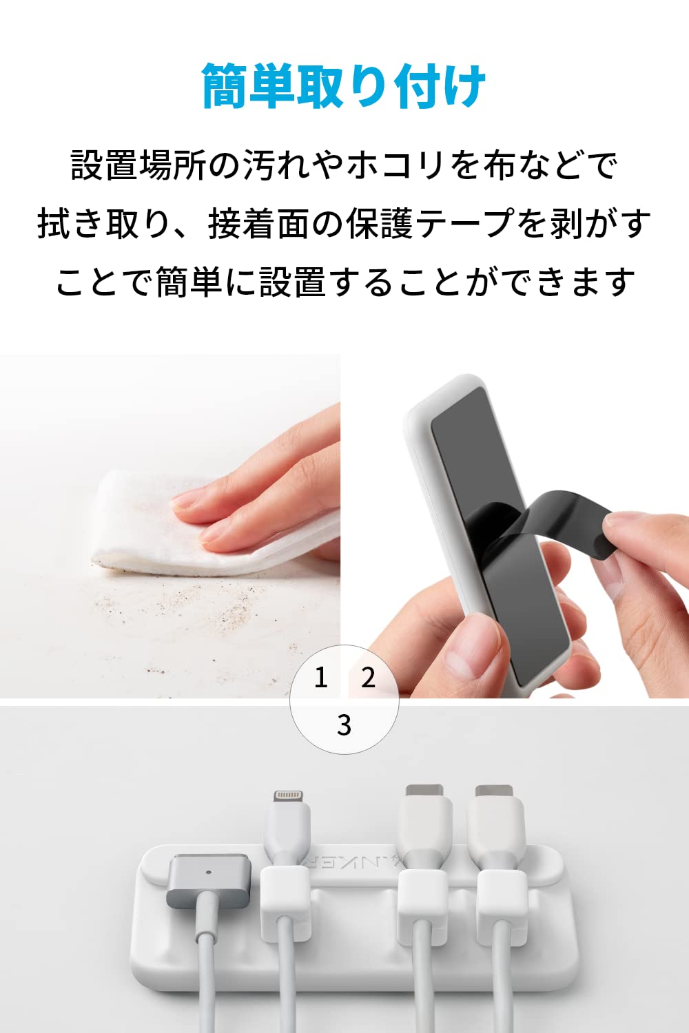 Anker Magnetic Cable Holder マグネット式 ケーブルホルダー ライトニングケーブル USB-C Micro USB ケーブル 他対応 デスク周り 便利グッズ (ホワイト)