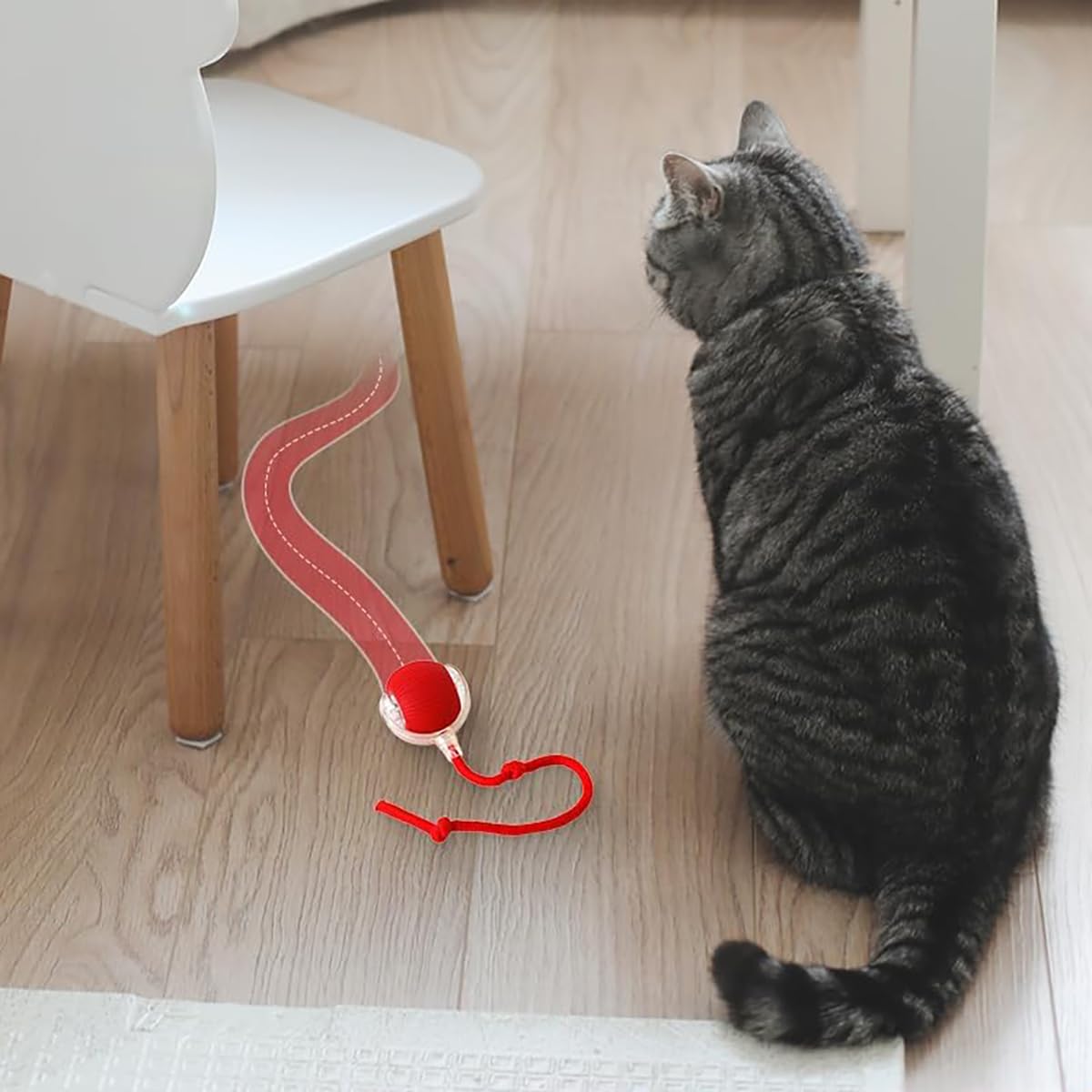 猫 おもちゃ 自動猫ボールおもちゃ 動く猫ボールおもちゃ 自動 360 度回転ローリング ボール USB 充電付き Type-C充電コネクタ 猫用長い尾付き電動自動おもちゃ 猫の運動不足解消 本能を刺激します (赤)