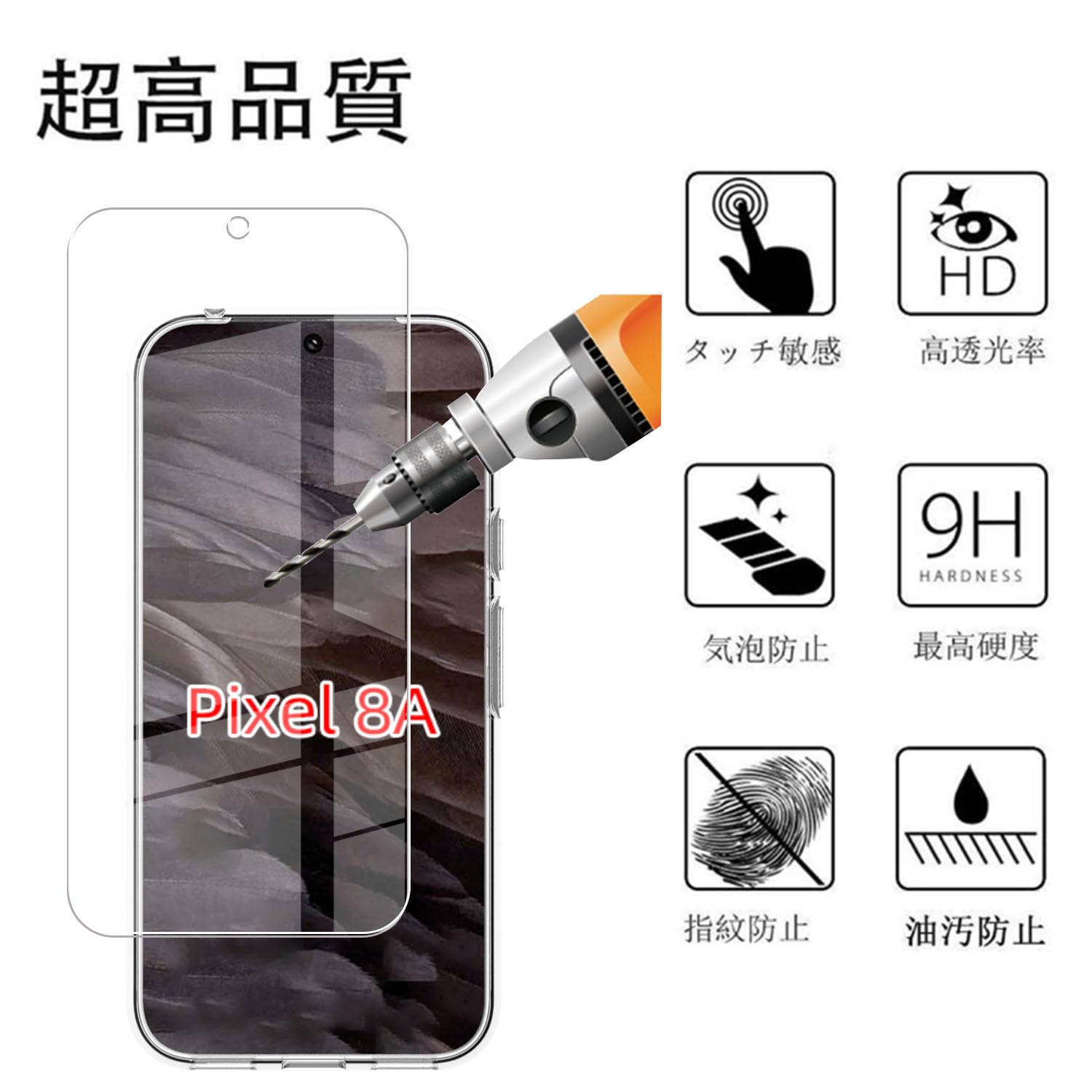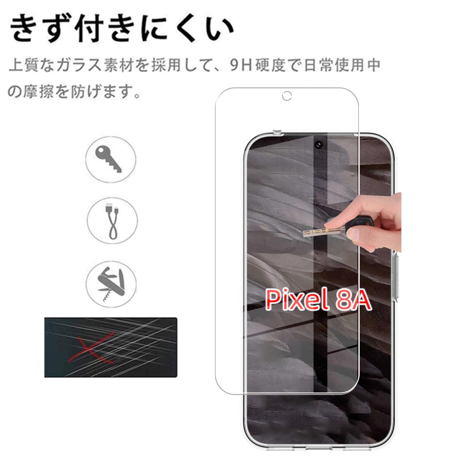 【対応機種】:Google Pixel 8A 5G フィルム 強化ガラス 液晶保護フィルム+透明 TPU ケース。