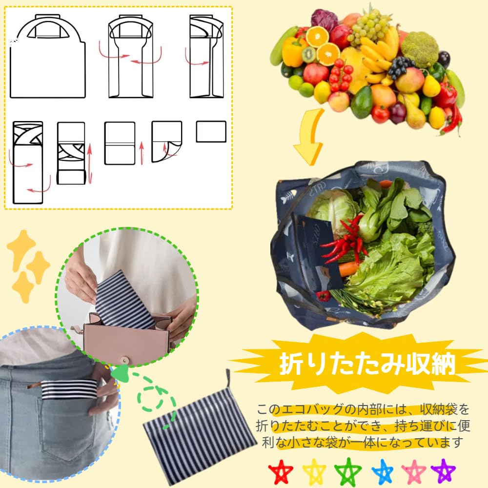 【大容量と便利】買い物に十分なスペースがないことに悩むことはありません!この折りたたみ可能なエコバッグは大容量で、大量の商品を収納できるように設計されています。